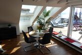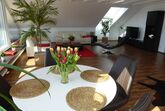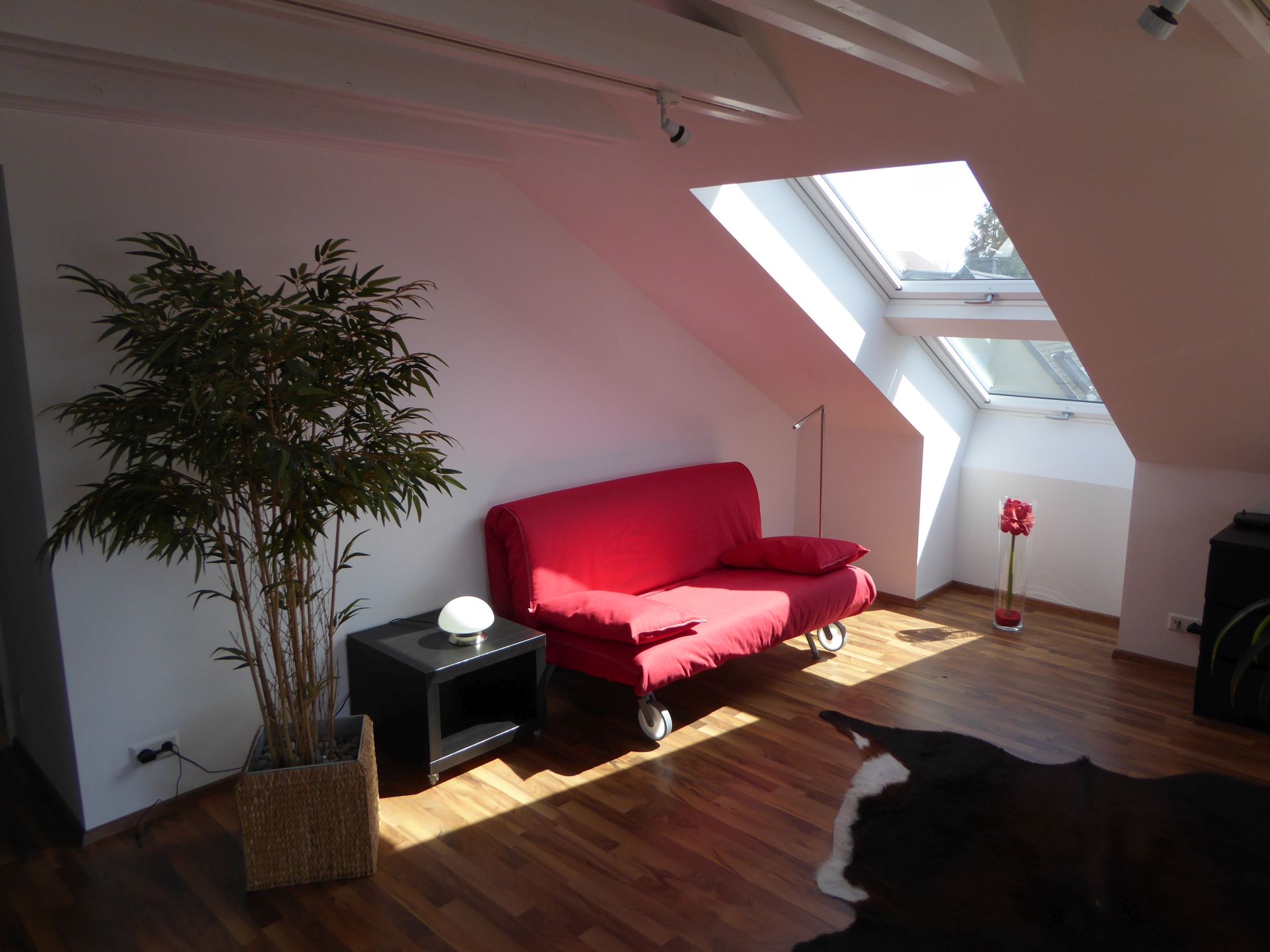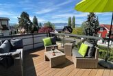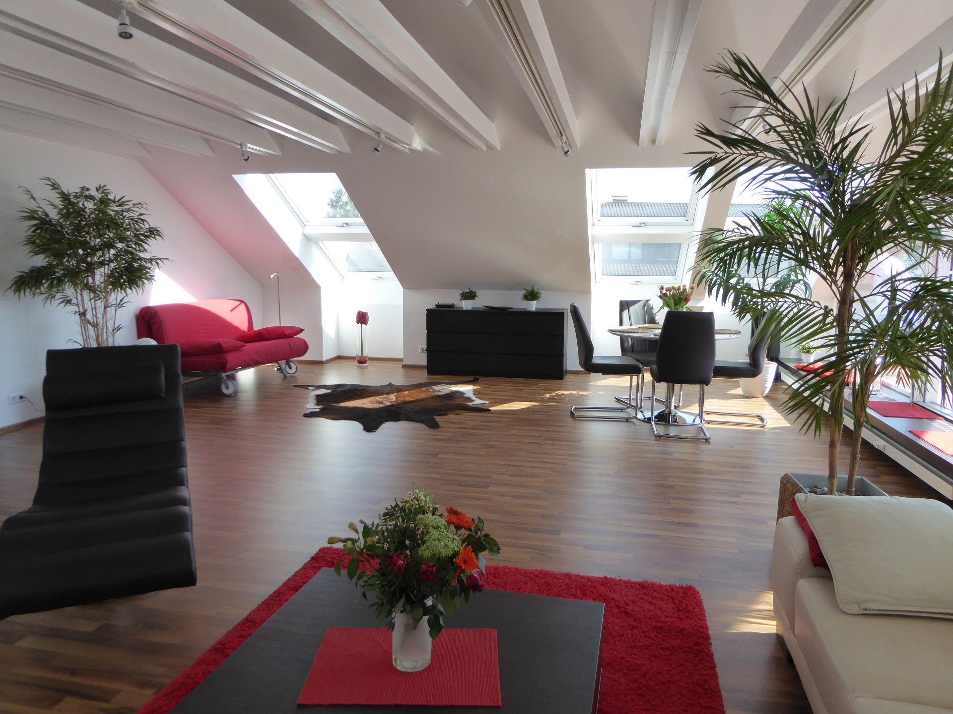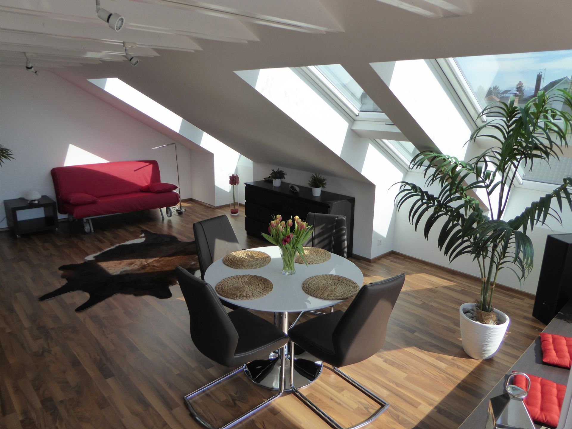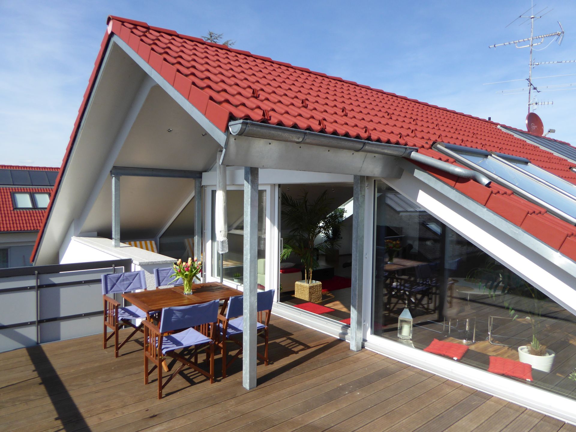 Die Ferienwohnung ist ca.110qm groß und bietet Platz für bis zu vier Personen. Sie liegt in der zweiten Etage eines 5-Familienhauses und nimmt das komplette Dachgeschoss ein. Die Wohnung zeichnet sich besonders durch einen traumhaften Blick auf den Bodensee bis hin zu den Schweizer Alpen vom komplett zum See verglasten Wohnzimmer und der ca. 30qm großen Dachterrasse aus. Das großzügige und lichtdurchflutete Wohnzimmer hat ca. 50qm und ist modern eingerichtet. Sie finden dort eine gemütliche Couchgarnitur, Esstisch mit vier Stühlen am Fenster, eine Doppelschlafcouch (160x200) und einen Relax- und Fernsehsessel. Ein 46Zoll Flachbildfernseher gehört ebenso zur Ausstattung wie eine Stereoanlage mit CD Player. Das Schlafzimmer ist ausgestattet mit einem Doppelbett (180x200), einem großzügigen Einbauschrank und einem Kosmetiktisch mit großem Spiegel. Im hellen Wohlfühlbad mit Eckbadewanne, separater Vollglas-Duschkabine, Waschtisch und WC fühlen Sie sich mit Sicherheit Wohl! In der separaten Küche finden Sie neben einem Backofen und einem Ceran Kochfeld den Kühlschrank mit Gefrierfach, eine Geschirrspülmaschine, eine Mikrowelle, eine Kaffeemaschine, einen Toaster und einen Wasserkocher. Im Flur befindet sich eine großzügige Garderobe.