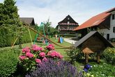 Die Unterkunft verfügt über einen gemeinsamen Außenbereich mit Garten, Terrasse und Spielplatz, den die Gäste nutzen können.