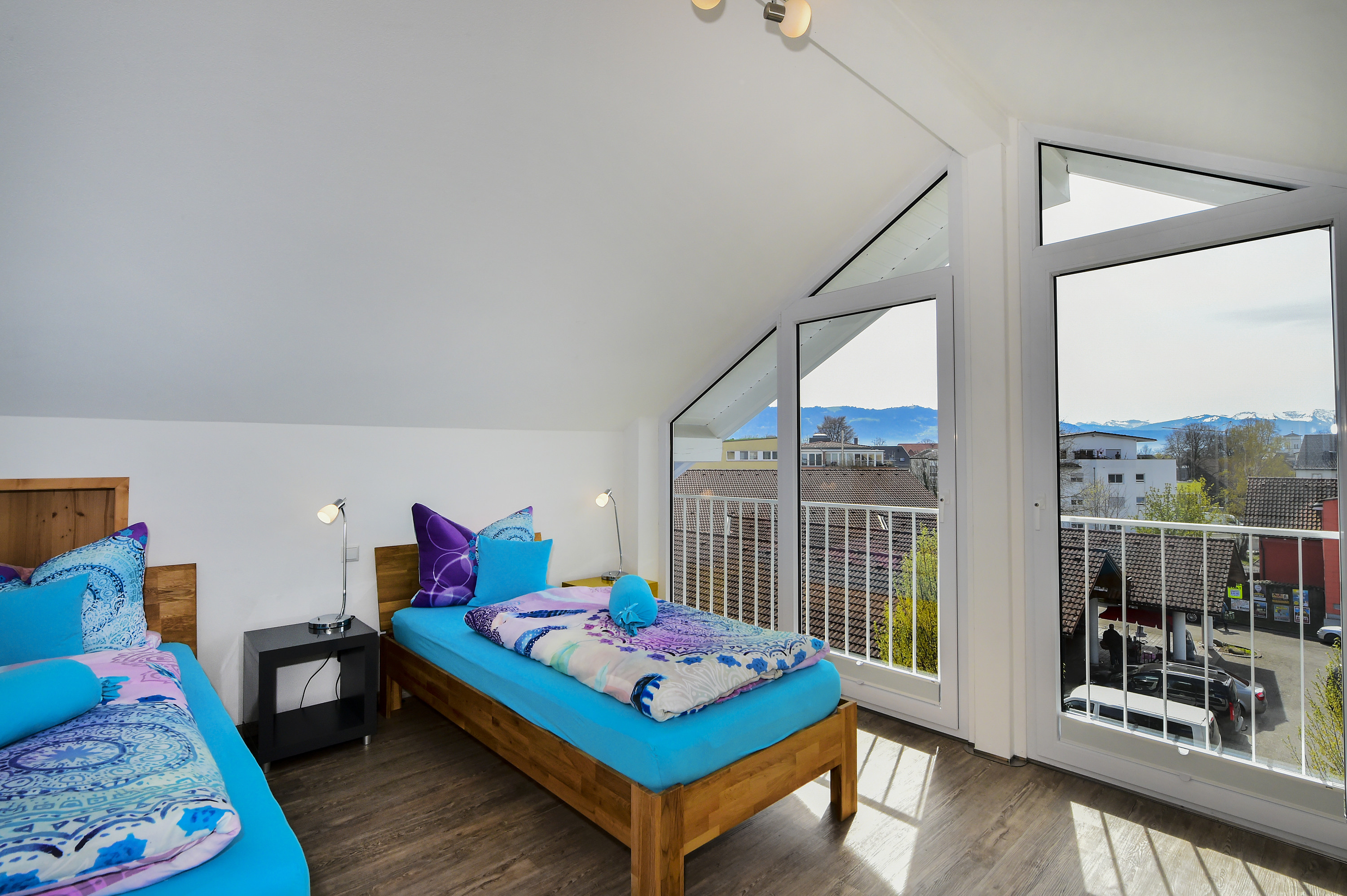 Zentrale Lage im Stadtteil Lindau-Reutin mit Stadtbus-Haltestelle in der Nähe. Einkaufsmöglichkeiten bequem zu Fuß erreichbar. Wohnung mit separatem, außenliegenden Treppenaufgang und eigener Eingangstür. Eingangsdiele und Garderobe. Großzügiges Wohn-Esszimmer mit großem Esstisch und ausreichend Sitzgelegenheiten. Gemütliche Couch, TV und Stereoanlage mit Digitalempfang, CD und USB im Wohnraum. Ein Schlafzimmer mit Doppelbett, Kleiderschrank und Kommode, das zweite Schlafzimmer mit Einzelbetten (auch als Doppelbett möglich) und Kleiderschrank. Zusatzbett extra für die 5. Person auf Anfrage. Bettwäsche-wechsel wöchentlich. Vollwertige modern ausgestattete Küche mit großem Geschirr- und Besteck Set. Bad mit Dusche und WC, vielen Ablagemöglichkeiten, Fön. Hand- und Badetücherwechsel wöchentlich. W-LAN kostenlos als Hotspot verfügbar (Freitickets für jeweils 7 Tage).