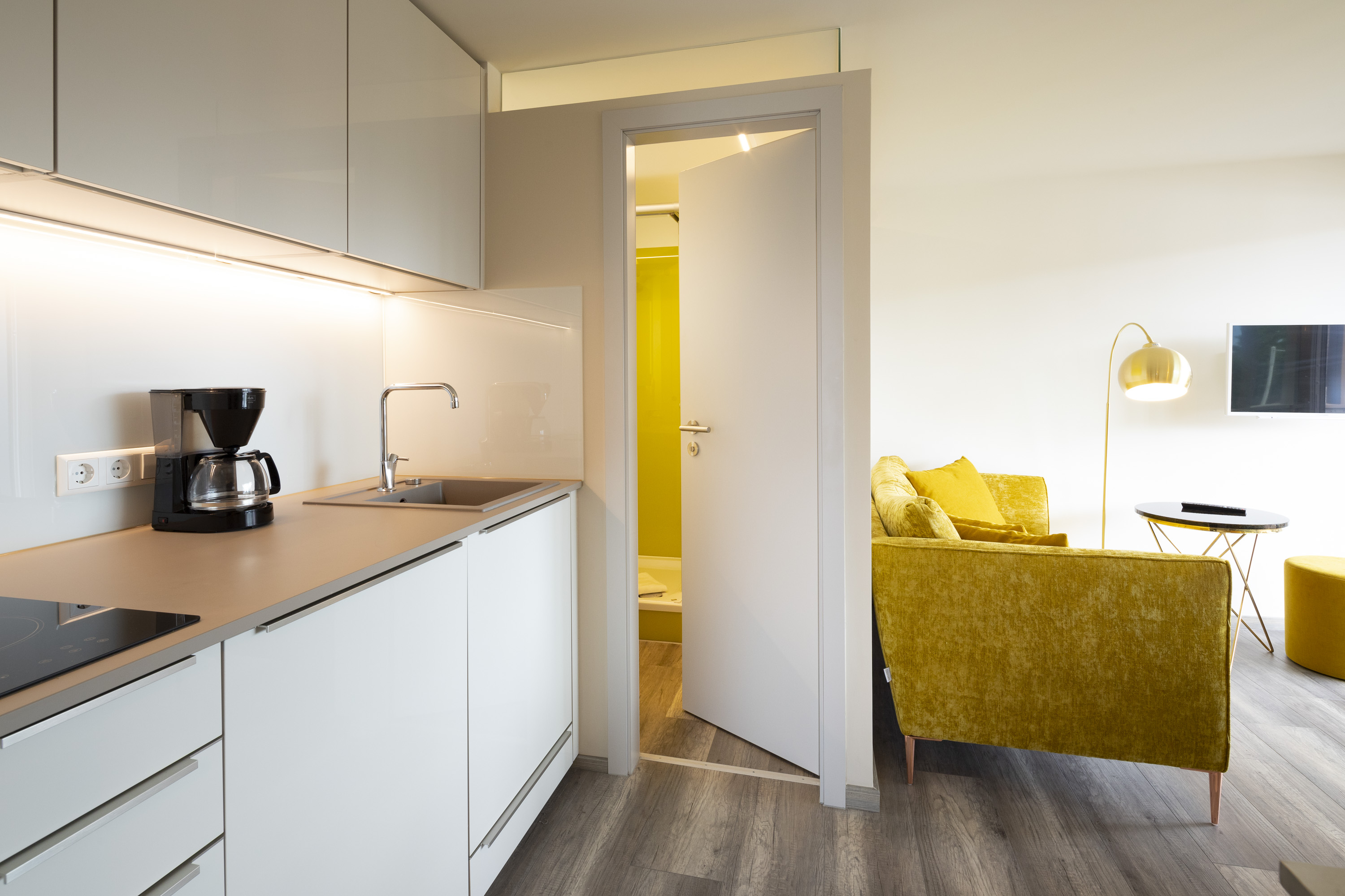 Angefangen vom Toaster, Kaffeemaschine, Wasserkocher, Geschirr, Besteck, Töpfe, Pfannen usw. bis hin zur Spülmaschine.