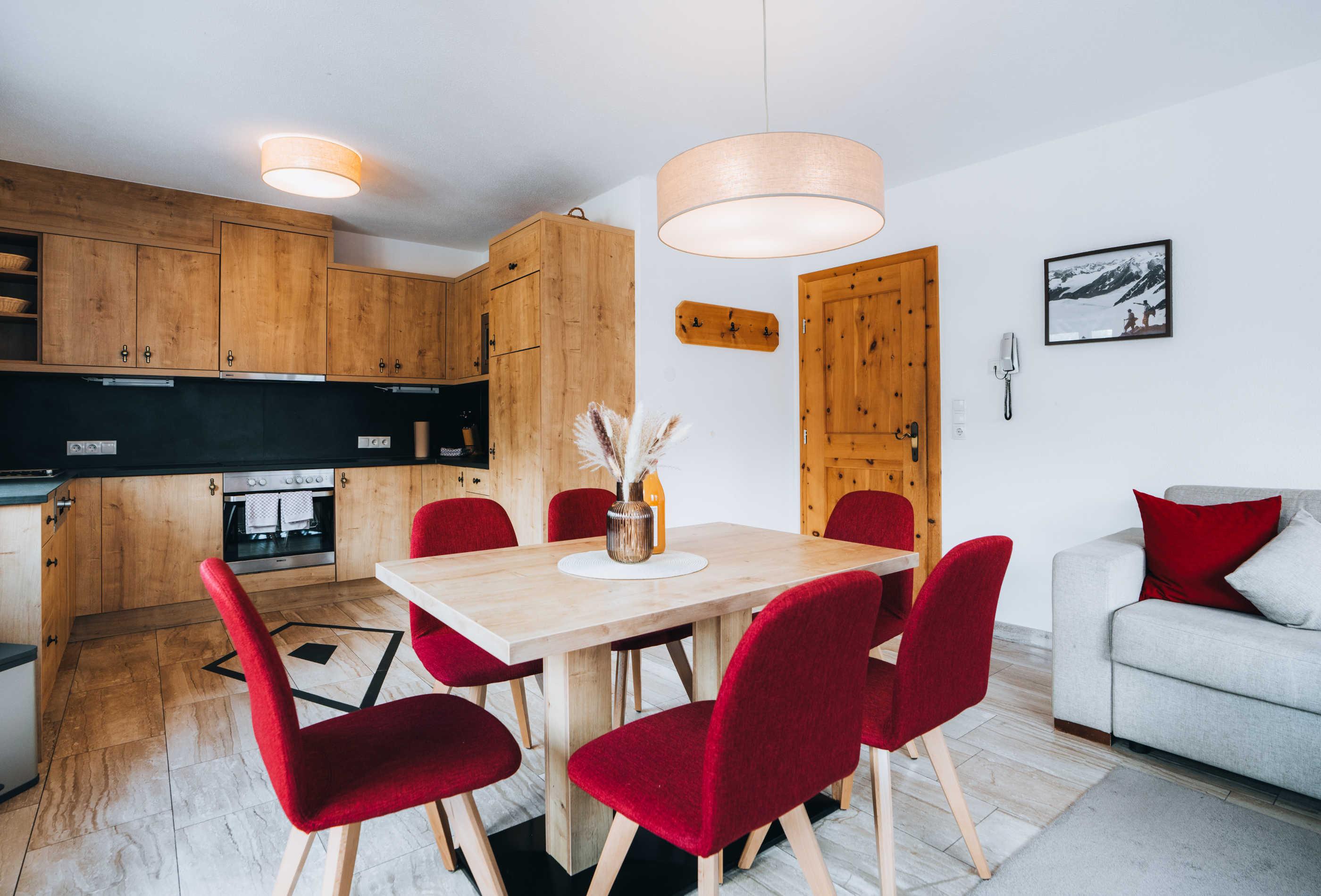 Balkon und Terrasse, WLAN, finnische Sauna, 2 Duschen mit Fön, Flat-TV im Wohnraum und in den Zimmern, Safe, Balkon, Terrasse, 2 Doppelbettzimmer, komplette Küchenausstattung, Bettwäsche, Handtücher und Saunamäntel vorhanden. Schiraum mit Schischuhtrockner. ca. 100 m²