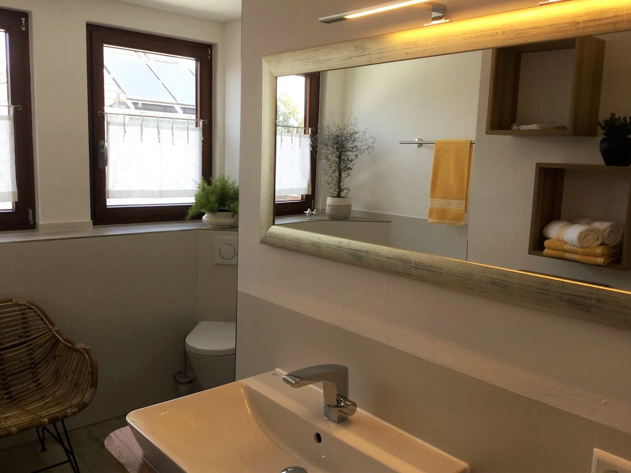 Die Ferienwohnung Maisonette am See bietet Ihnen eine stilvolle Auszeit in Nonnenhorn mit einem wunderschönen Blick auf den Bodensee. Die moderne Maisonette-Wohnung erstreckt sich über zwei Etagen und kombiniert Komfort mit einer entspannten Atmosphäre. Sie verfügt über ein großzügiges Wohnzimmer, eine voll ausgestattete Küche, ein gemütliches Schlafzimmer, ein modernes Badezimmer sowie einen Hausarbeitsraum mit Gäste-WC.