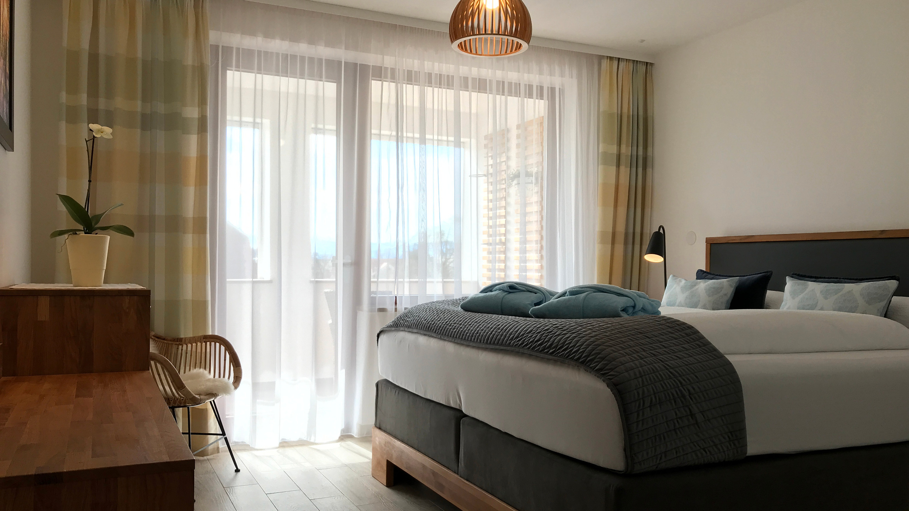 Zur Ausstattung gehören schnelles WLAN, das sich auch für Videoanrufe eignet, ein Smart-TV mit Streaming-Diensten, eine Klimaanlage, ein Ventilator sowie eine Waschmaschine mit integriertem Trockner. Besonders einladend sind der private Balkon mit Blick auf den See und die Loggia mit einer wunderbaren Aussicht auf die Berge.