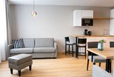 Großzügige Suite mit 40 qm - Wohnraum mit Schlafcouch für zwei und dazu Schlafzimmer mit Doppelbett - ideal für 1 bis max. 4 Gäste. Die Endreinigung nach Abreise ist im Preis enthalten, frische Handtücher/Bettwäsche bieten wir nach individueller Absprache während des Aufenthalts.