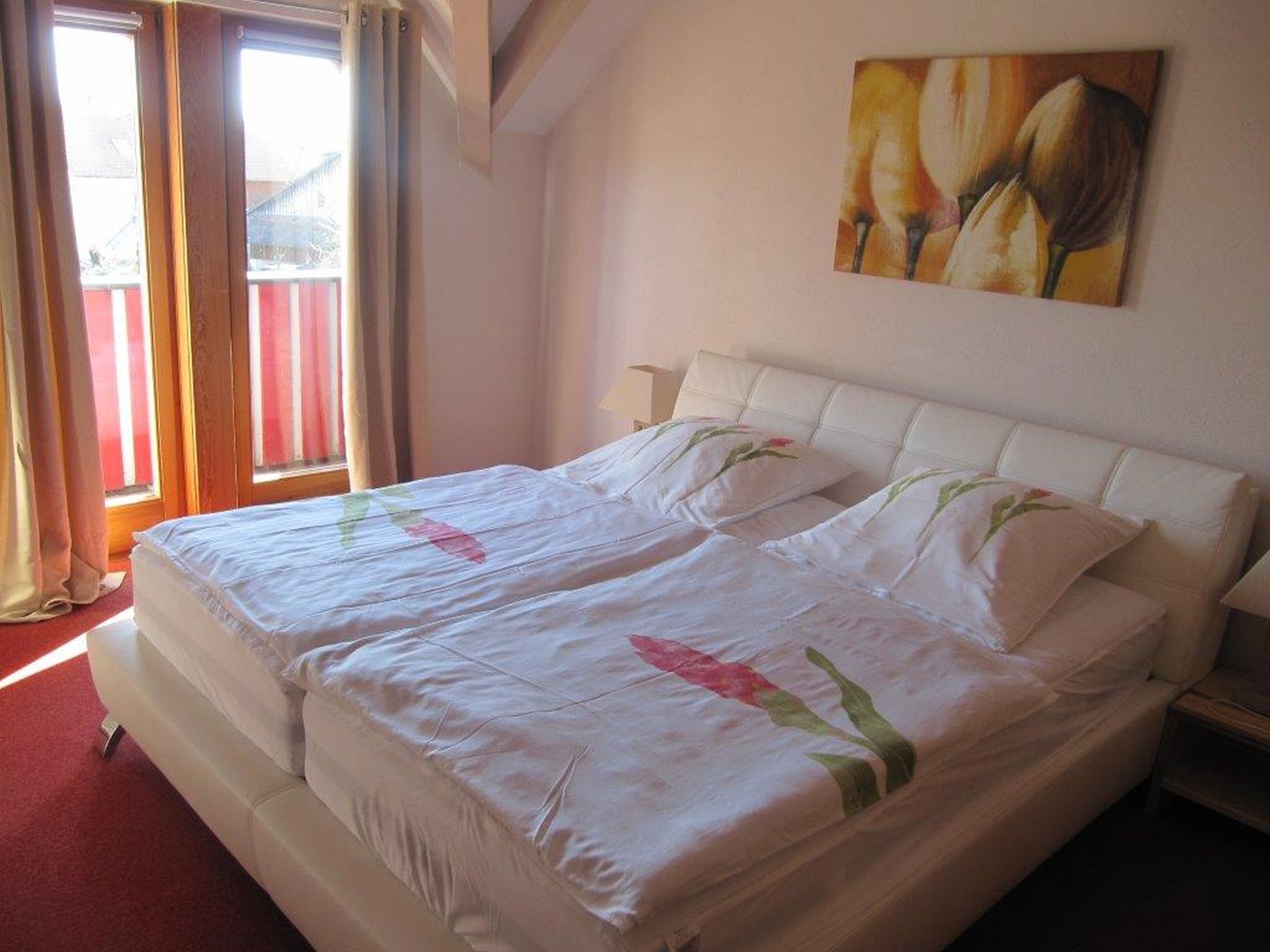Unsere hellen, freundlichen Ferienwohnungen liegen im 2. Stock und verfügen jeweils über ein geräumiges Wohnzimmer mit einer Schlafcouch, einem Schlafzimmer für 2 Personen, einer voll ausgestatteten Küche, einem Badezimmer mit Dusche/WC und Fenster. Ein Flachbild TV sowie kostenloses Wlan stehen zur Verfügung und auf den 2 vorhandenen Balkonen lässt es sich bei einem Gläschen Wein gut aushalten.