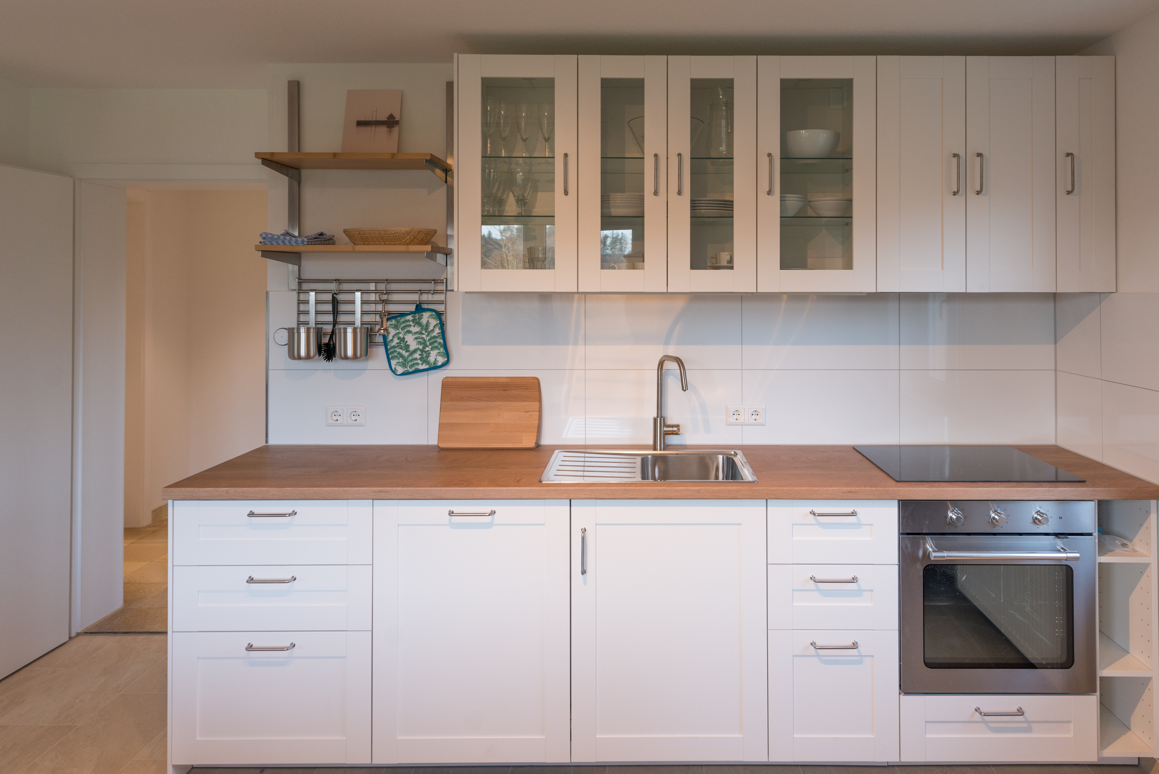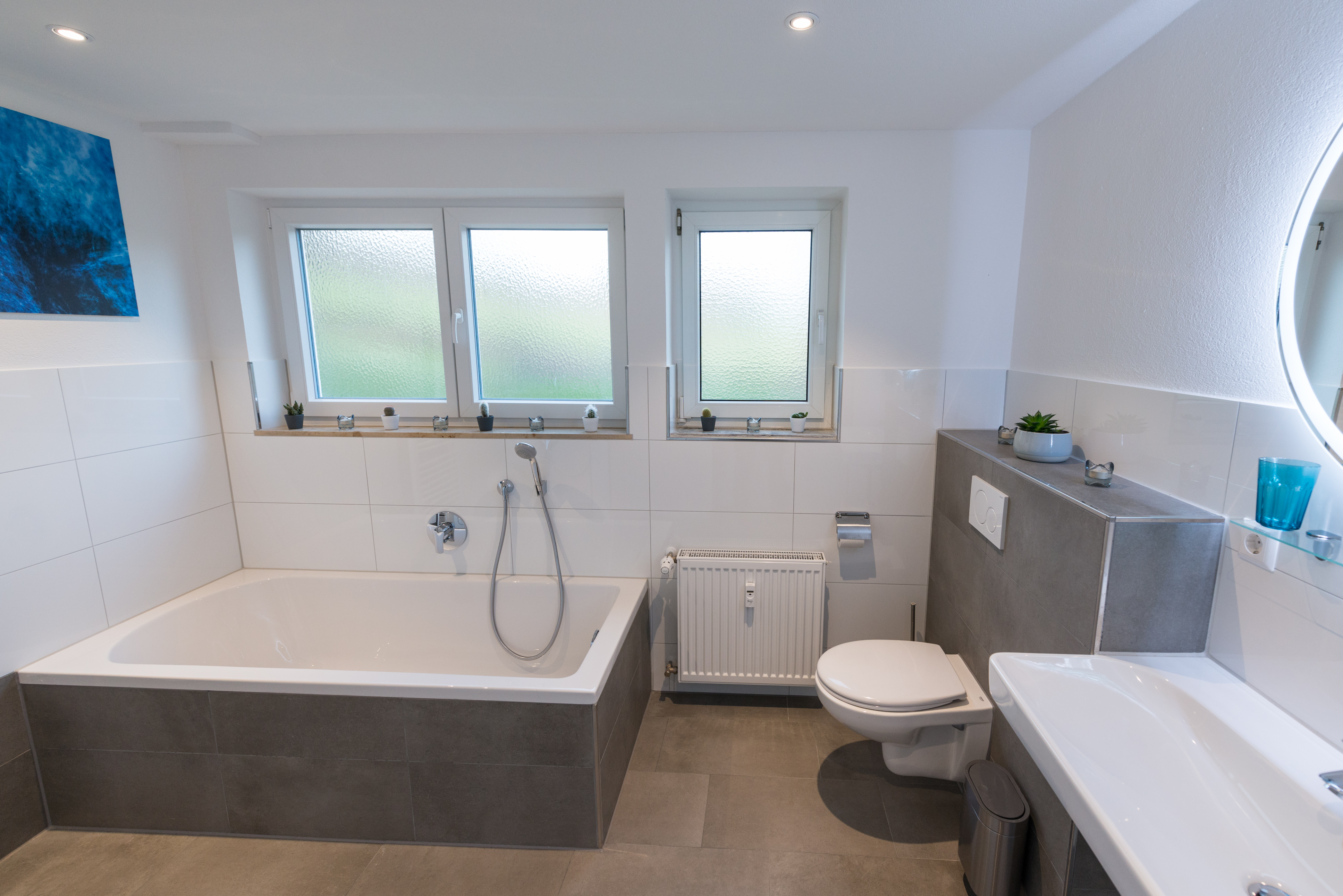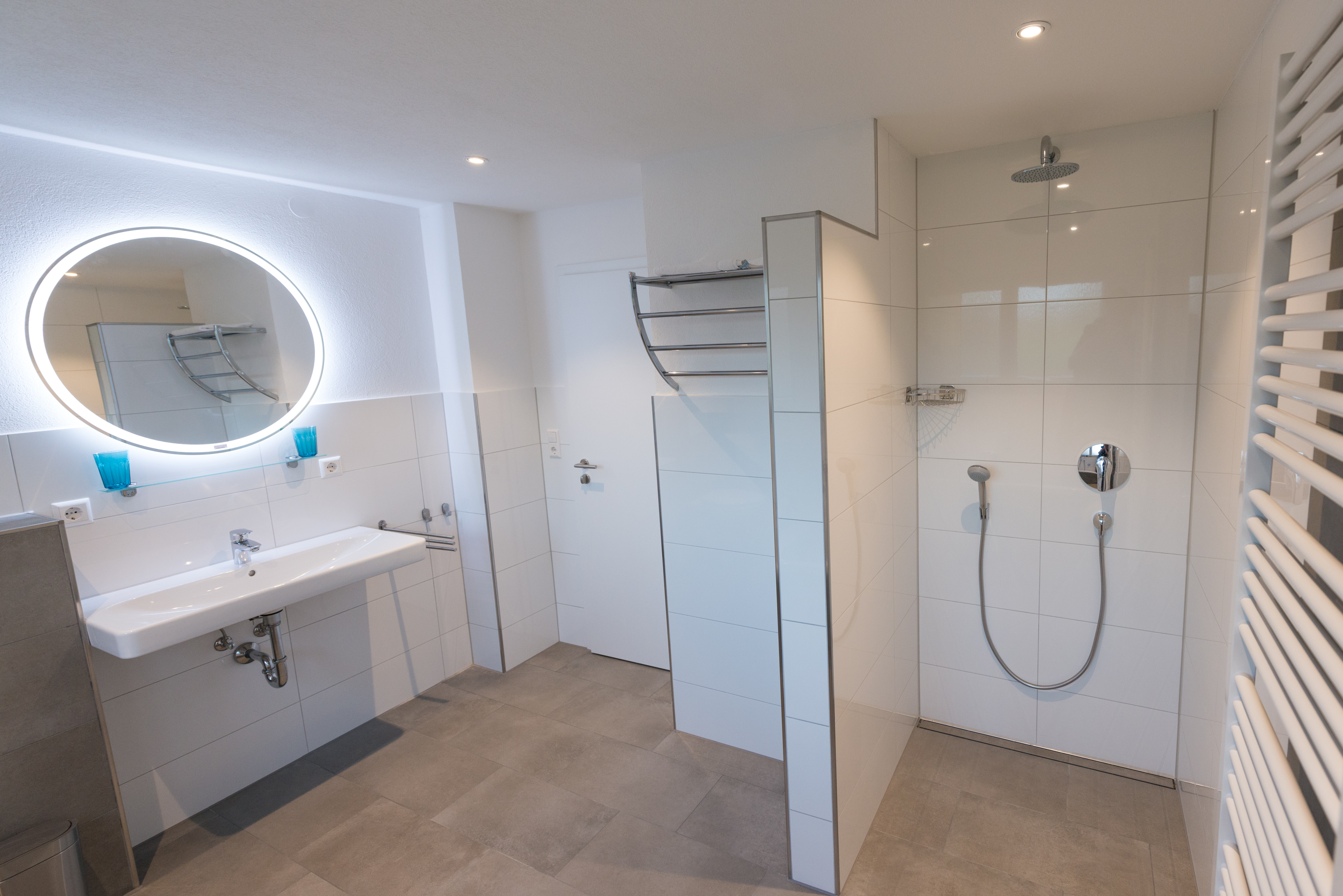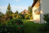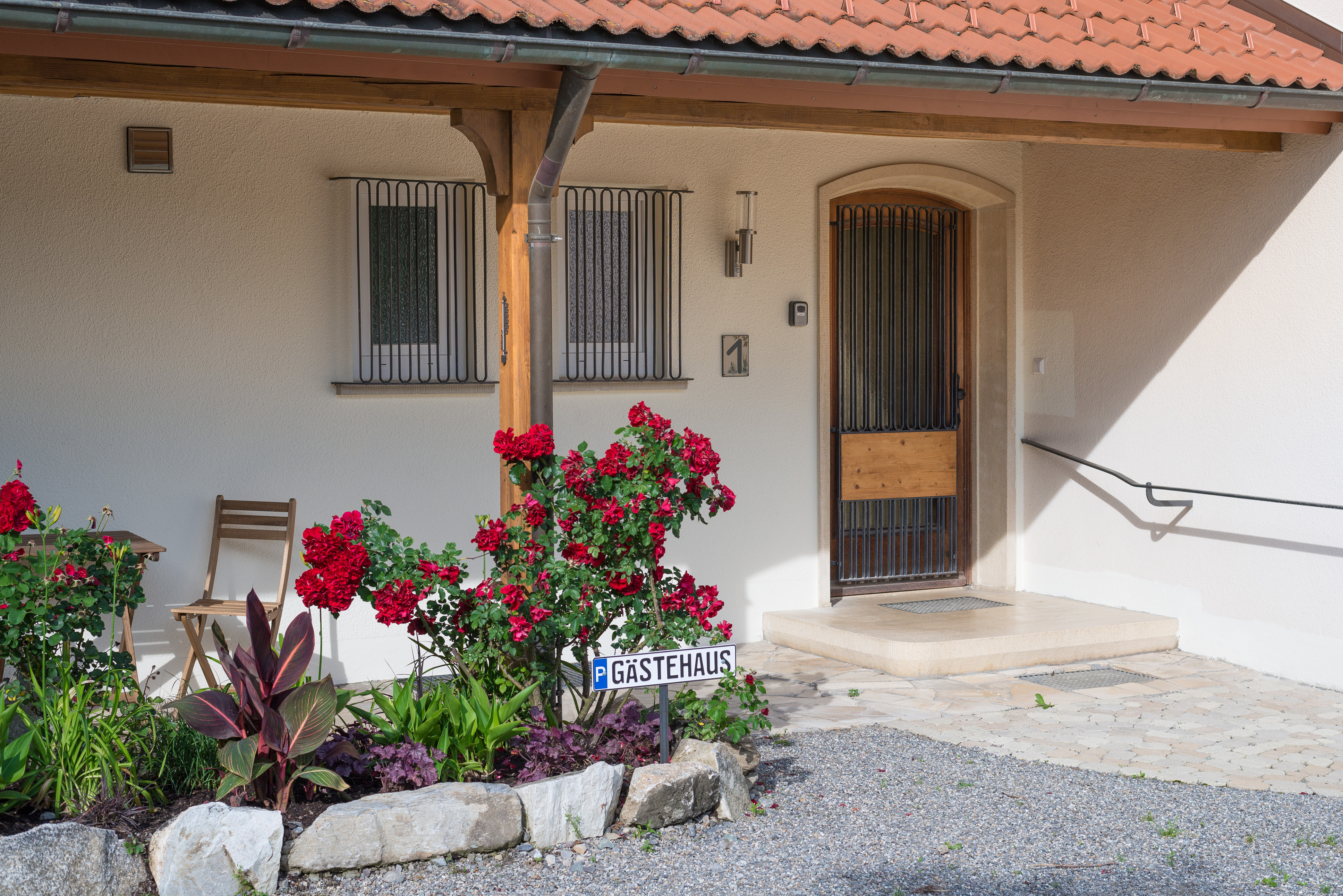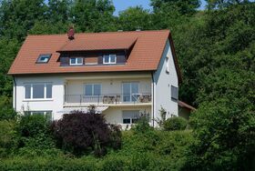Unsere frisch renovierte Ferienwohnung Rosa mit Vollholzparkett und Natursteinböden bietet im Erdgeschoss auf 105 qm für bis zu 5 Erwachsene ein hochwertiges Wohnambiente. Vom großzügigen Wohn/Essbereich mit SAT-TV gelangen Sie direkt auf Ihre private, von Wiesen und Obstbäumen umgebene Terrasse mit Grillmöglichkeit. In unserer neuen, voll ausgestatteten Küche mit Kühl-/Gefrierschrank, Backofen, Herd mit Cerankochfeld, Wasserkocher, Toaster,... können Sie sich Ihre Köstlichkeiten selbst zubereiten. Das neue Badezimmer lädt Sie ein, sich mit einer großen bodengleicher Dusche und einer Badewanne zu erholen. Das große Schlafzimmer ist mit einem komfortablen Doppelbett ( 180x200cm ) und einem Einzelbett ( 90x200 cm ) ausgestattet. Sie gelangen von hier ebenfalls direkt auf die Terrasse. Im zweiten Schlafzimmer stehen zwei Einzelbetten ( 90x200 cm ). Das WLAN  steht in der gesamten Wohnung kostenfrei zur Verfügung. Bettwäsche und Handtücher stehen in Hotelqualität zur Verfügung und werden professionell gereinigt. Aus Rücksicht auf andere Gäste sowie Bewohner des Hauses ist das Rauchen im ganzen Gebäude nicht gestattet. Haustiere sind nicht erlaubt. Fahrräder können Sie in der seperaten Fahrradgarage sicher abstellen. Eine Waschmaschine steht Ihnen zur freien Benutzung im Waschkeller zur Verfügung. Ebenfalls ist ein Trockenraum vorhanden. Jeder Wohnung steht ein seperater PKW- Stellplatz zur Verfügung.