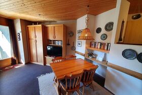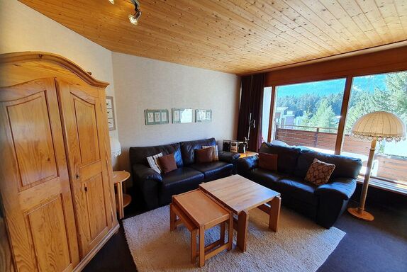 2- Zimmer-Wohnung (ca. 51 m²) im Haus Curtschin. Die Wohnung verfügt über ein grosses Wohnzimmer mit integrierter Einbauküche (Geschirrspüler, Backofen, Kühlschrank). Balkon, TV und W-Lan. Ein separates Schlafzimmer mit Doppelbett und eine Schlafmöglichkeit im Wohnzimmer (Schrankbett). Bad/WC.