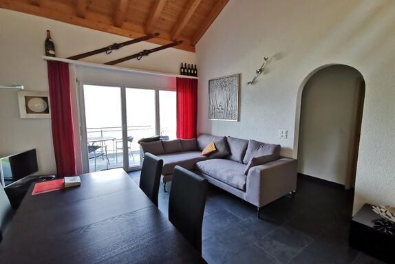 Die Ferienwohnung liegt am oberen Dorfrand von Vazerol, grosszügig, sonnig, ruhig mit unverbauter Aussicht auf das Albulatal.