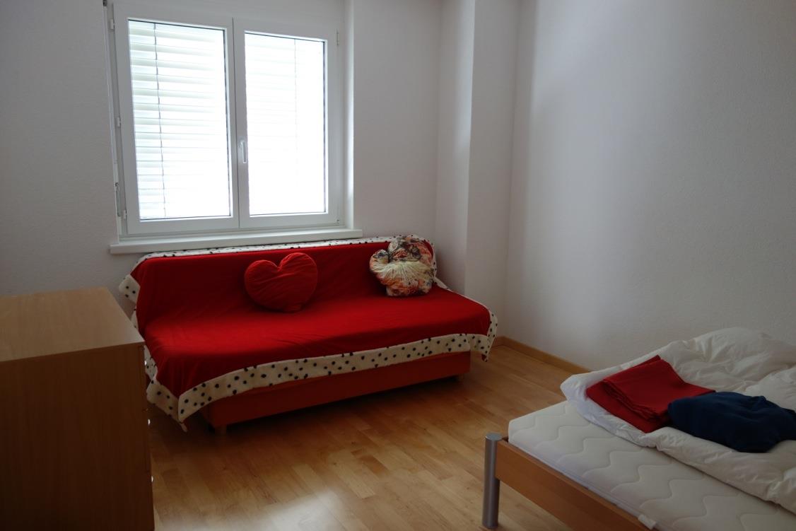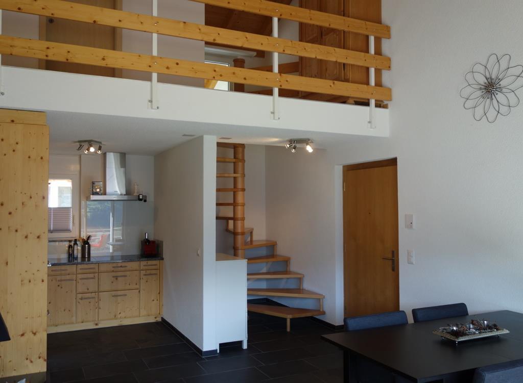 Maisonette-Dachwohnung mit 35m2 grossem Ess- und Wohnbereich, 3 grosszügige Schlafzimmer, im oberen Schlafzimmer 1.60 x 2.00 Bett, in den unteren beiden Schlafzimmern ein 1.40 x 2.00 Bett zusätzlich in einem Schlafzimmer ein Ausziehsofa, 2 moderne Badezimmer mit Dusche/WC