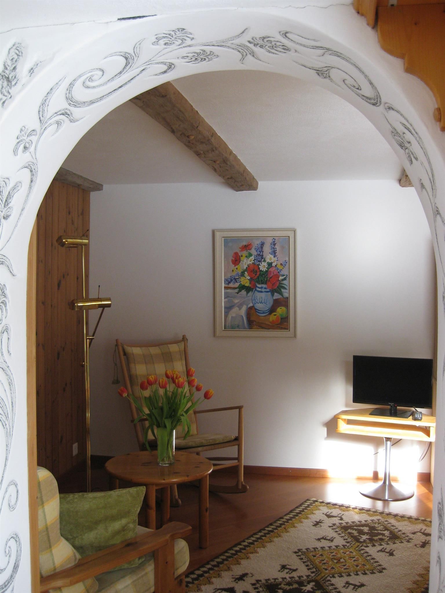 Die Küche ist im Wohnzimmer integriert und mit einem 4-Kochherd , Backofen, Geschirr-Spülmaschine, Kühlschrank, Nespresso Kaffemaschine ausgestattet. Wohn-/Esszimmer mit Fernseher, Telefon und Radio. Schlafzimmer mit 1 Doppelbett. Dusche/Toilette. Frotteewäsche und Küchentücher vorhanden. Keine Haustiere. Garten und Skiraum. 45 m2.