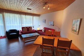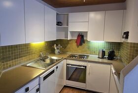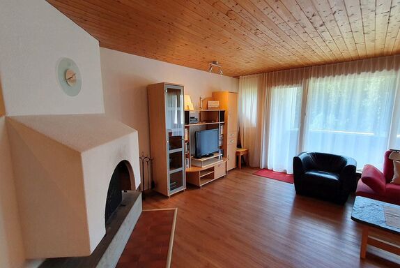 3- Zimmer-Wohnung (ca. 67 m²) im Haus Tavanera. Die Wohnung verfügt über ein grosses Wohnzimmer mit integrierter Einbauküche (Geschirrspüler, Backofen, Kühlschrank). Offener Kamin, Balkon, TV und W-Lan. Ein Schlafzimmer mit einem Kajütenbett und einem Einzelbett und ein Schlafzimmer mit einem Doppelbett. Bad, separates WC.
