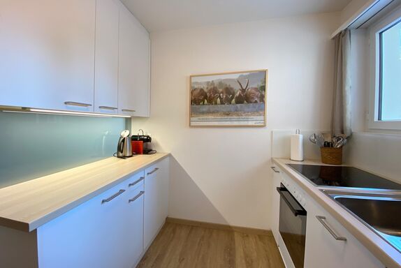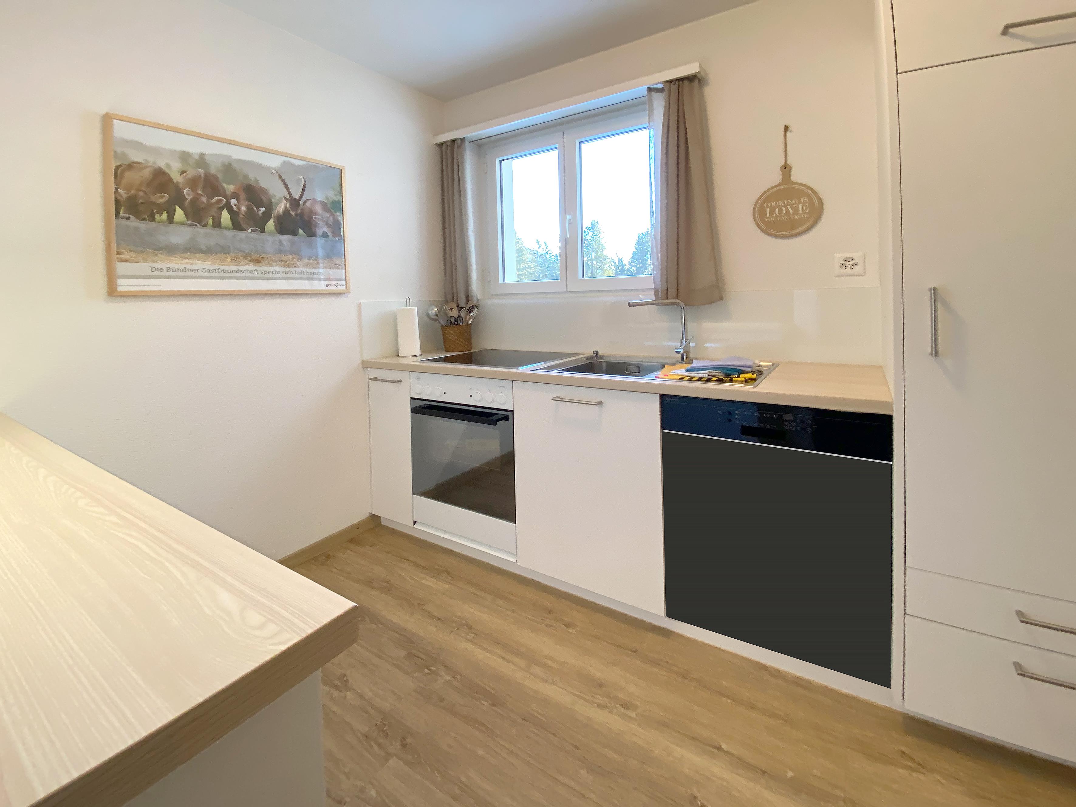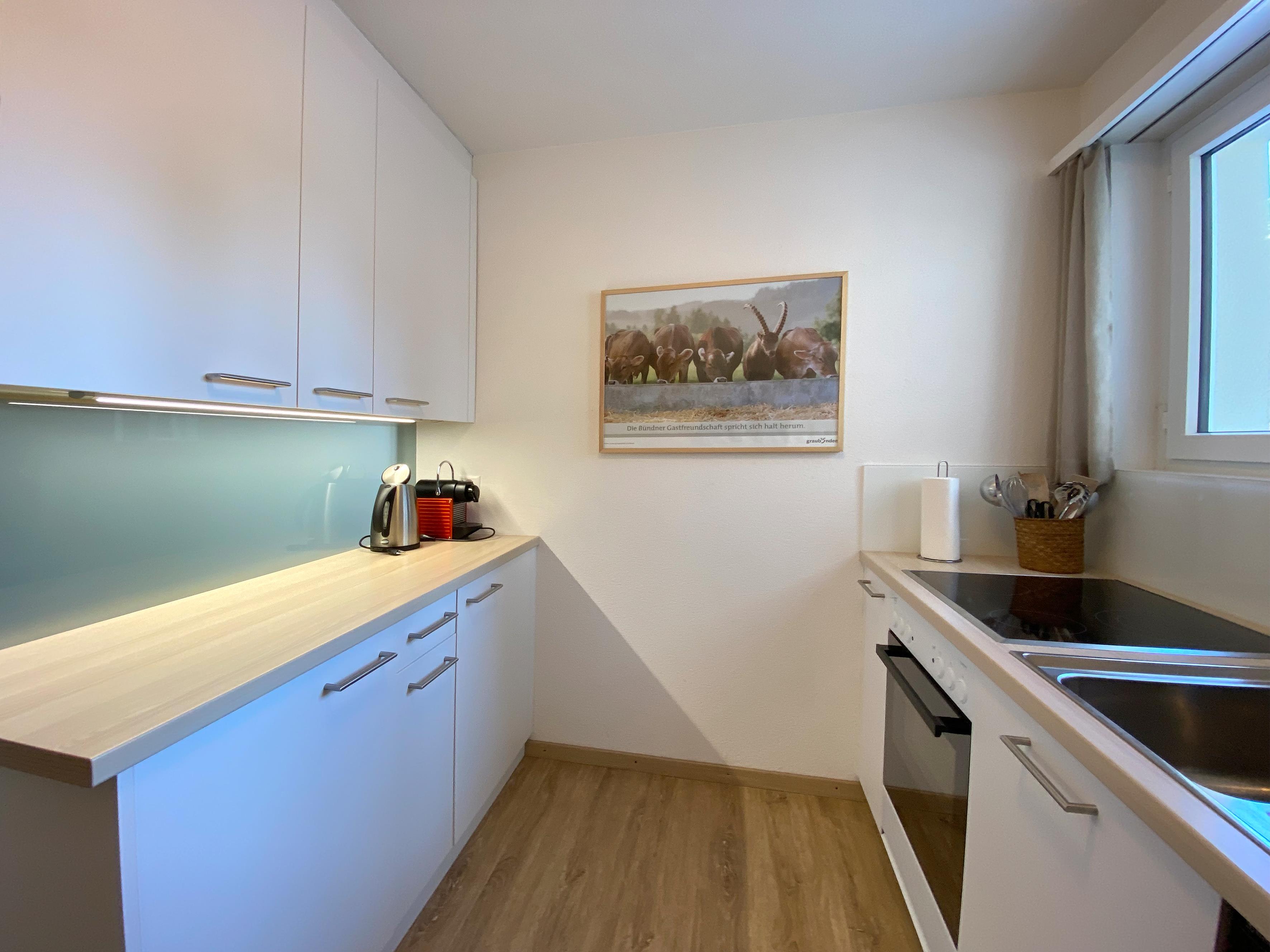 3.5 Zimmerwohnung mit einem Wohn-/Esszimmer, separate Küche mit Geschirrspüler und Kaffeemaschine, 2 Schlafzimmer, Bad/WC und separates WC.
