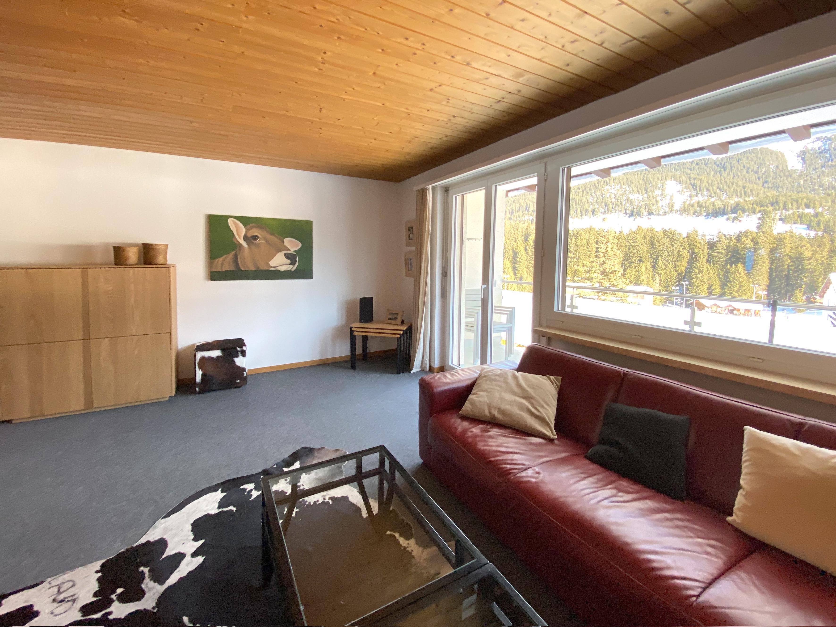 3.5 Zimmerwohnung in Mehrfamilienhaus. Ruhige, idyllische Lage mit schöner Aussicht. Balkon und Garten. Zentrale Lage, optimaler Ausgangspunkt für Wintersport und Wanderungen.