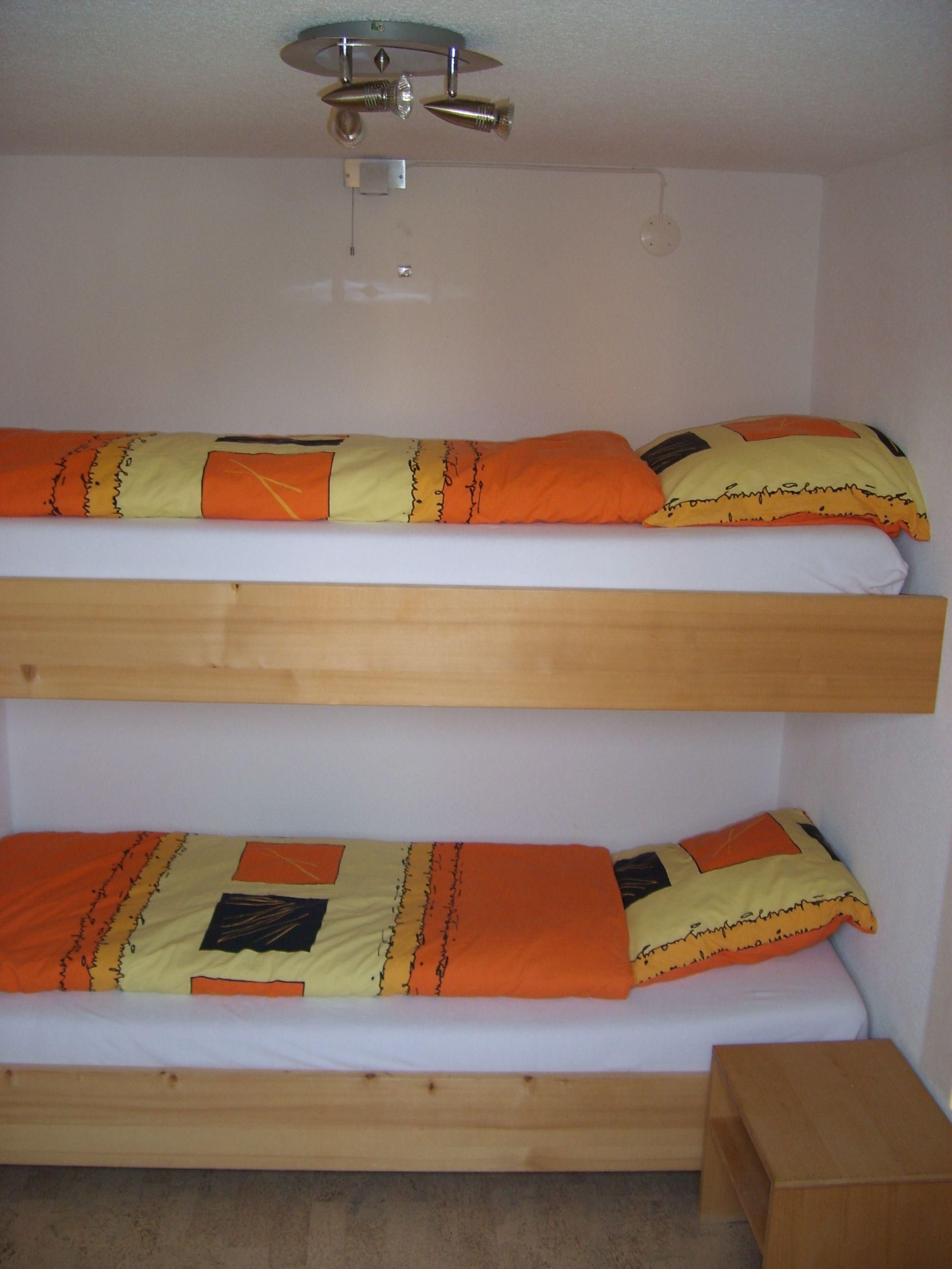 Neumöblierte Wohnung auf einer Etage, moderne Wohnküche, Geschirrspüler, Wohnzimmer mit Sofabett, TV, Radio, CD Player, 1 Doppelschlafzimmer, 1 Schlafzimmer mit Etagenbetten (bei Bedarf Schutzgitter vorhanden), Badezimmer mit Lavabo und Dusche/WC (Erdgeschoss).