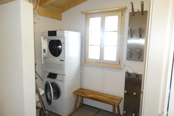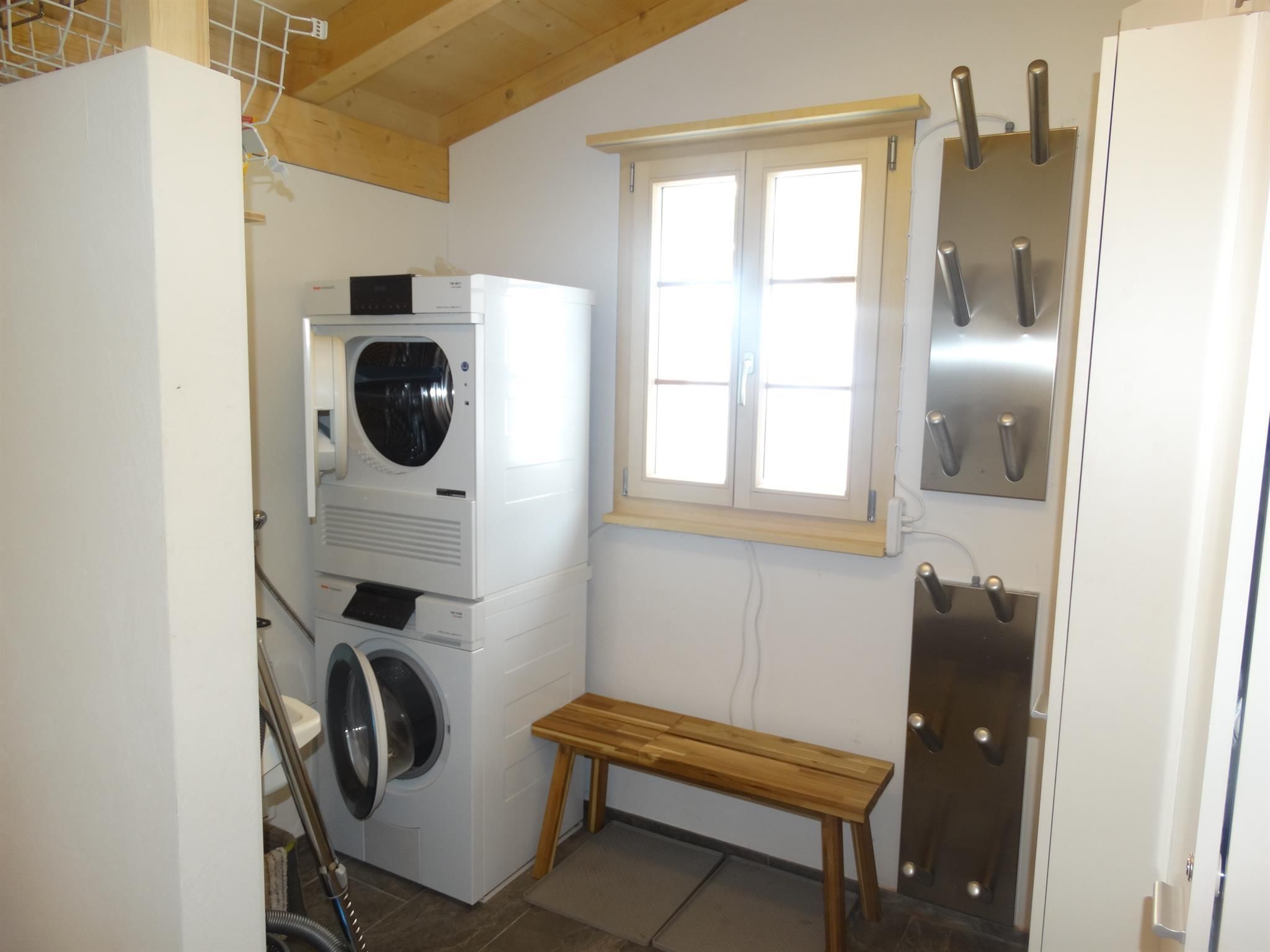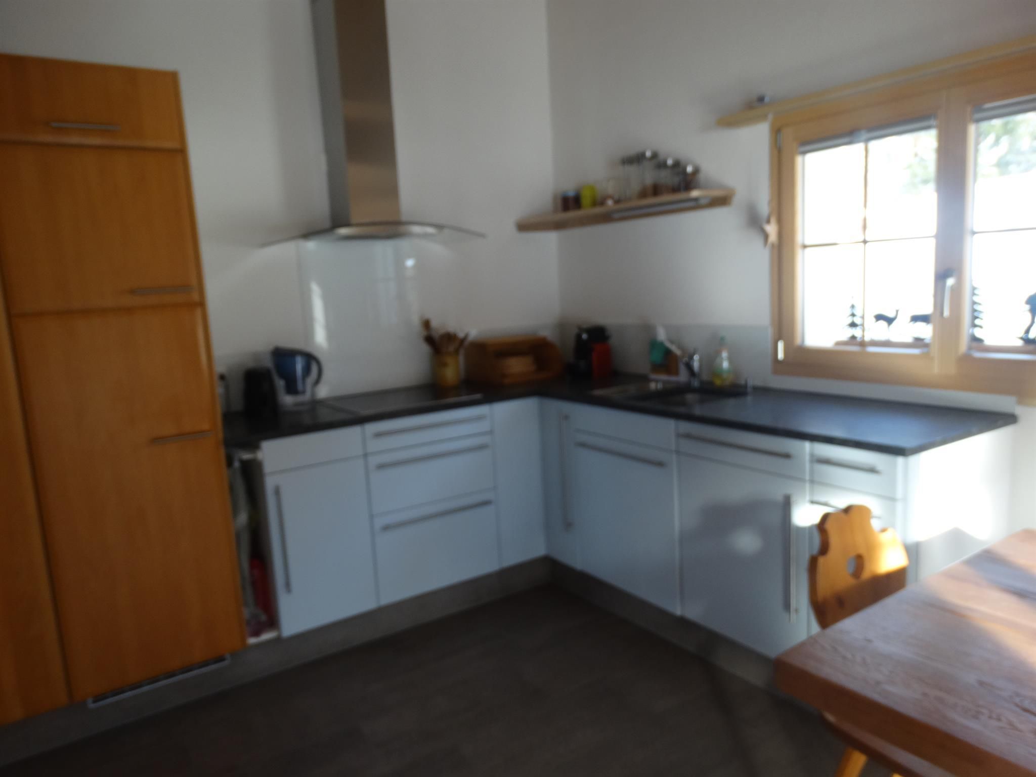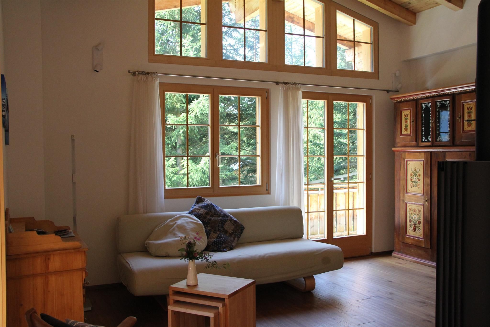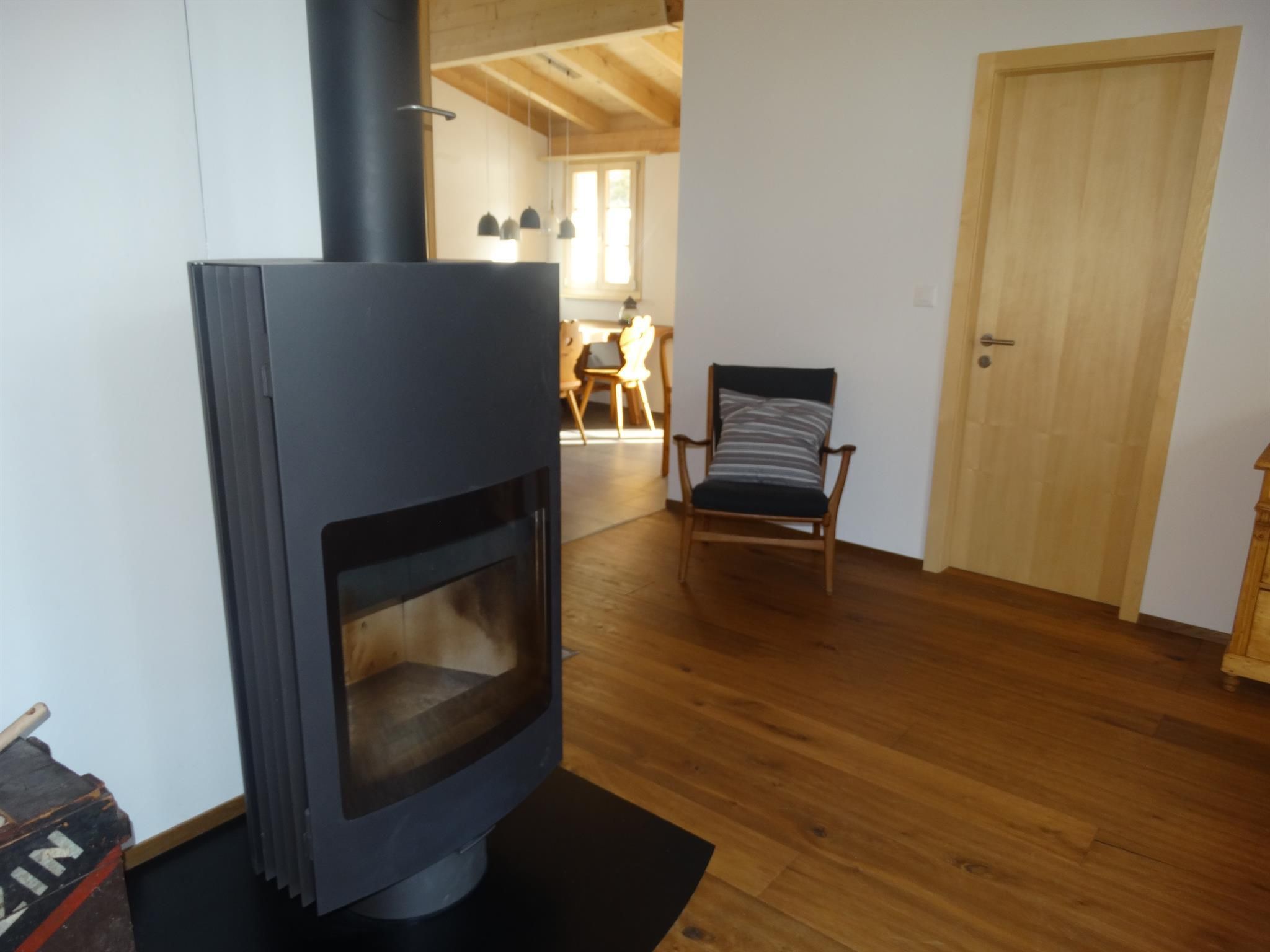 Eine schöne, neue Wohnküche lädt zum Verweilen ein. Im Wohnzimmer gibt es einen Cheminéeofen mit dem das Haus geheizt wird. Im Chalet hat es drei Schlafräume: ein Doppelschlafzimmer mit einem Hüslernest, ein Kinderzimmer mit vier Schlafplätzen (2 Etagenbetten), ein separates Schlafzimmer mit einem 120 cm Bett. In den Schlafzimmern und dem Wohnzimmer hat es einen Parkettboden. In der Wohnküche und den Nassräumen hat es einen Plattenboden, welcher mit einer elektrischen Bodenheizung beheizt werden kann. Es hat zwei WC, davon ein Badezimmer mit Dusche/WC. Im Nassraum/Eingang befindet sich zusätzlich zur Waschmaschine und Tumbler ein Skischuhtrockner.