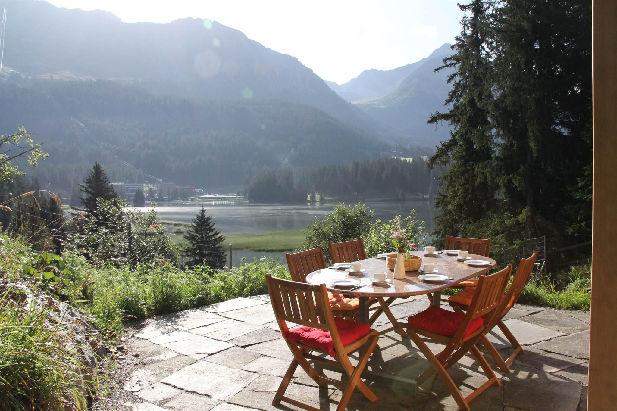 Das freistehende Haus befindet sich ca. 50 Meter oberhalb dem Heidsee auf der Westseite.