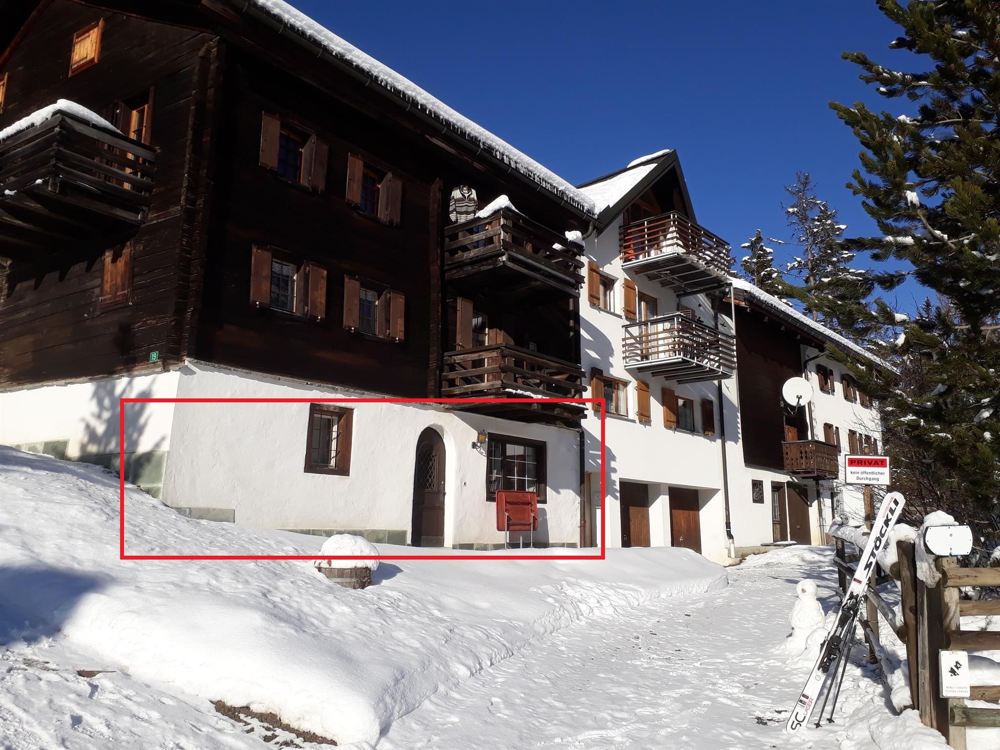Unmittelbar an der Langlauf-Loipe. Bei guten Schneeverhältnissen direkte Skifahrt zum Skilift Crestas. 2 Minuten zum Sport- und Spielplatz, 3 Minuten zur Post.