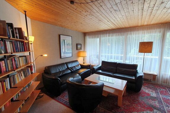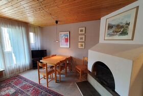 3- Zimmer-Wohnung (ca. 67 m²) im Haus Tavanera. Die Wohnung verfügt über ein grosses Wohnzimmer mit integrierter Einbauküche (Geschirrspüler, Backofen, Kühlschrank). Offener Kamin, Balkon, TV, W-Lan. Ein Schlafzimmer mit einem Kajütenbett und einem Einzelbett und ein Schlafzimmer mit einem Doppelbett. Bad, separates WC.