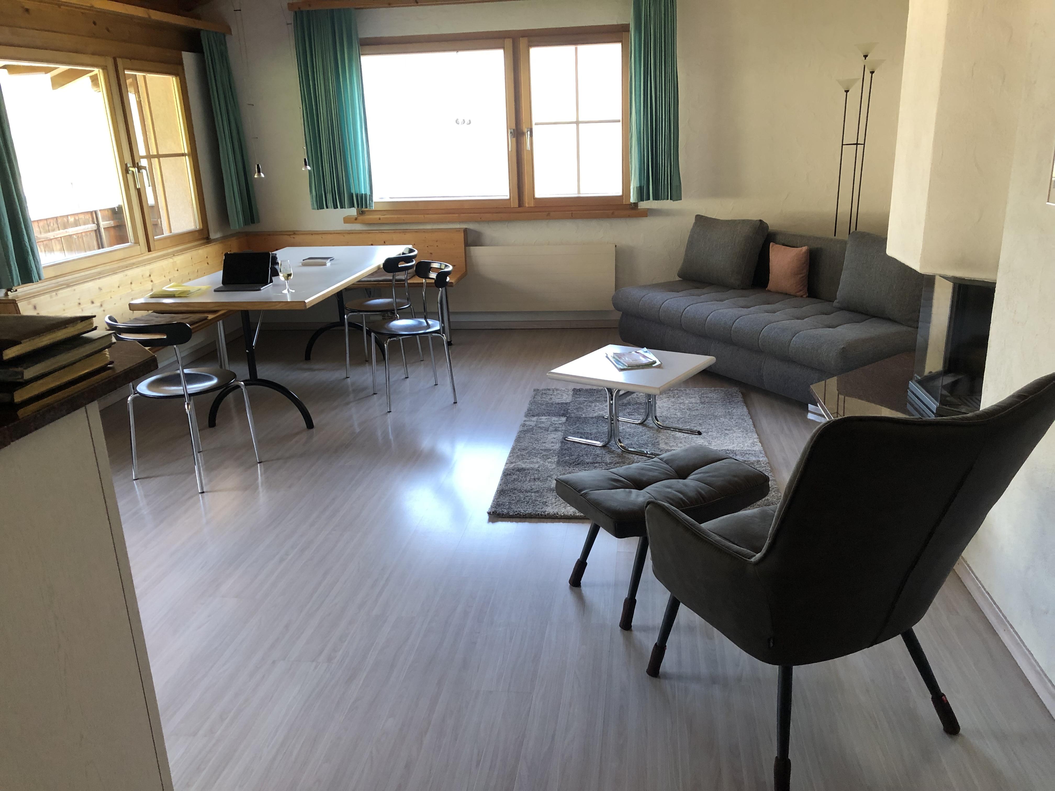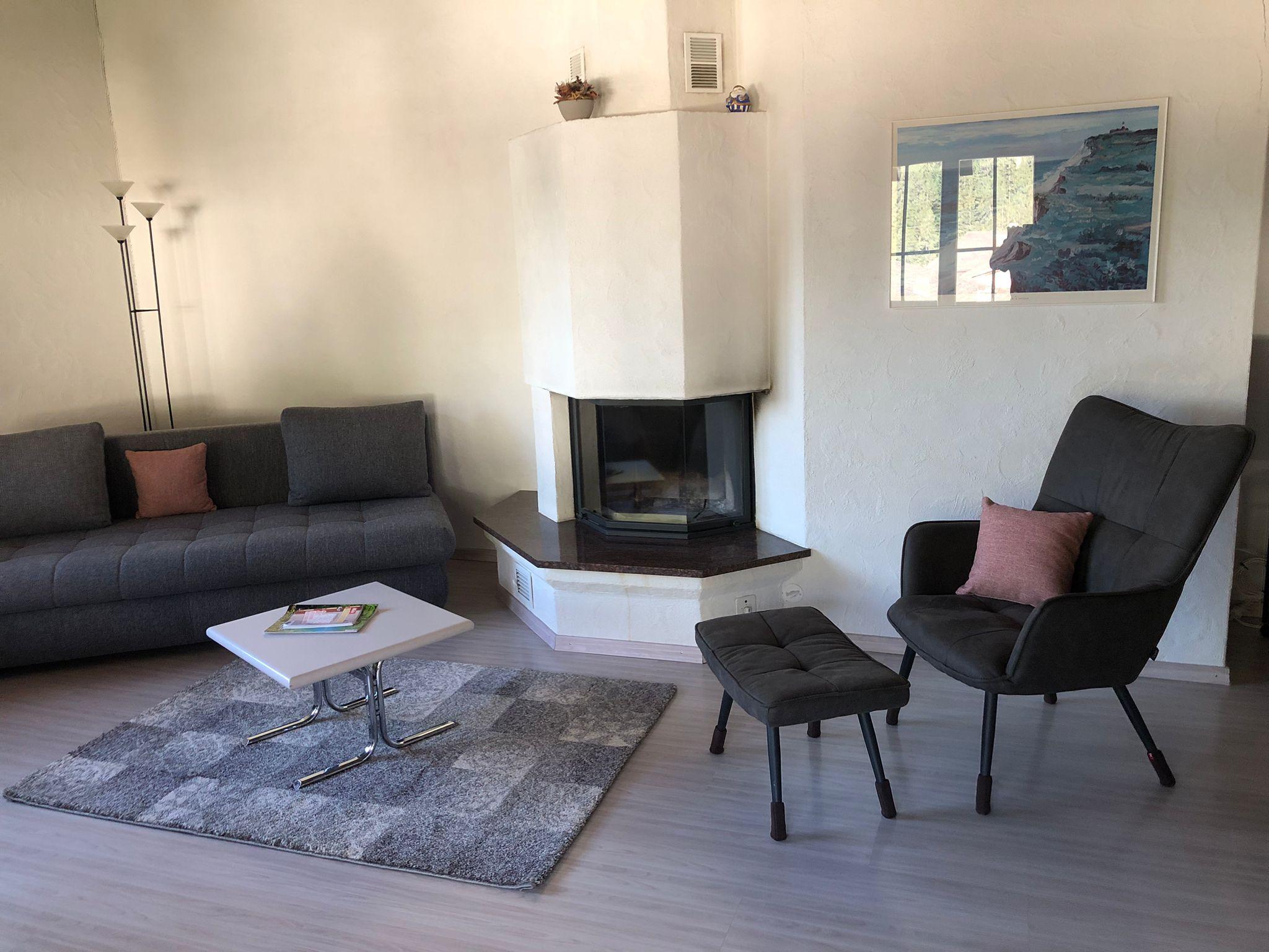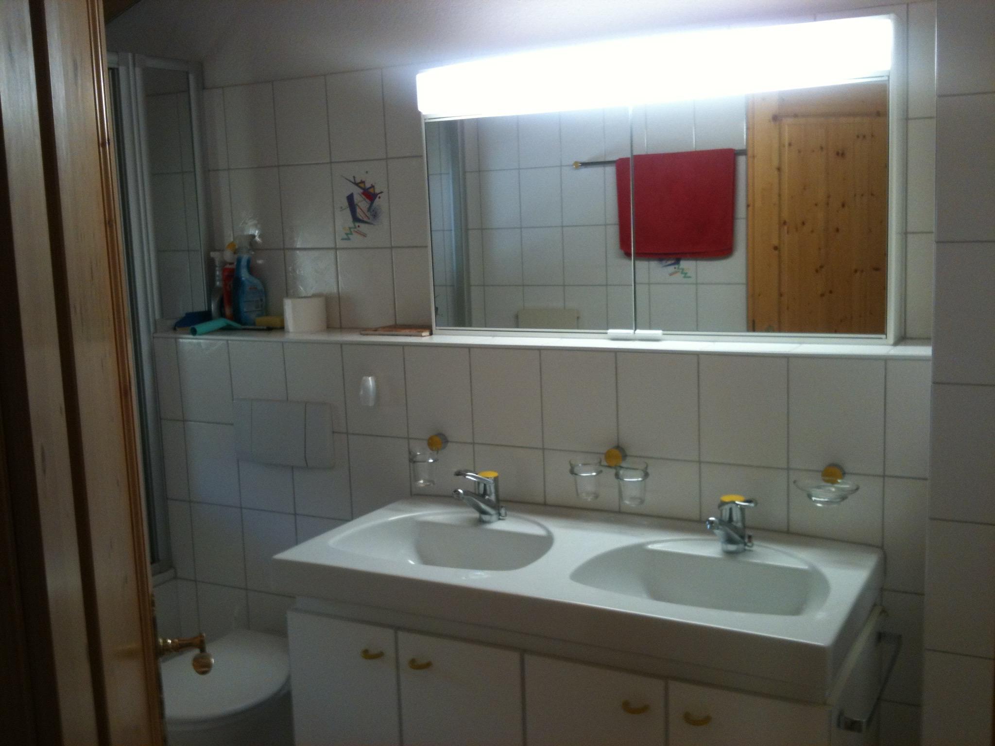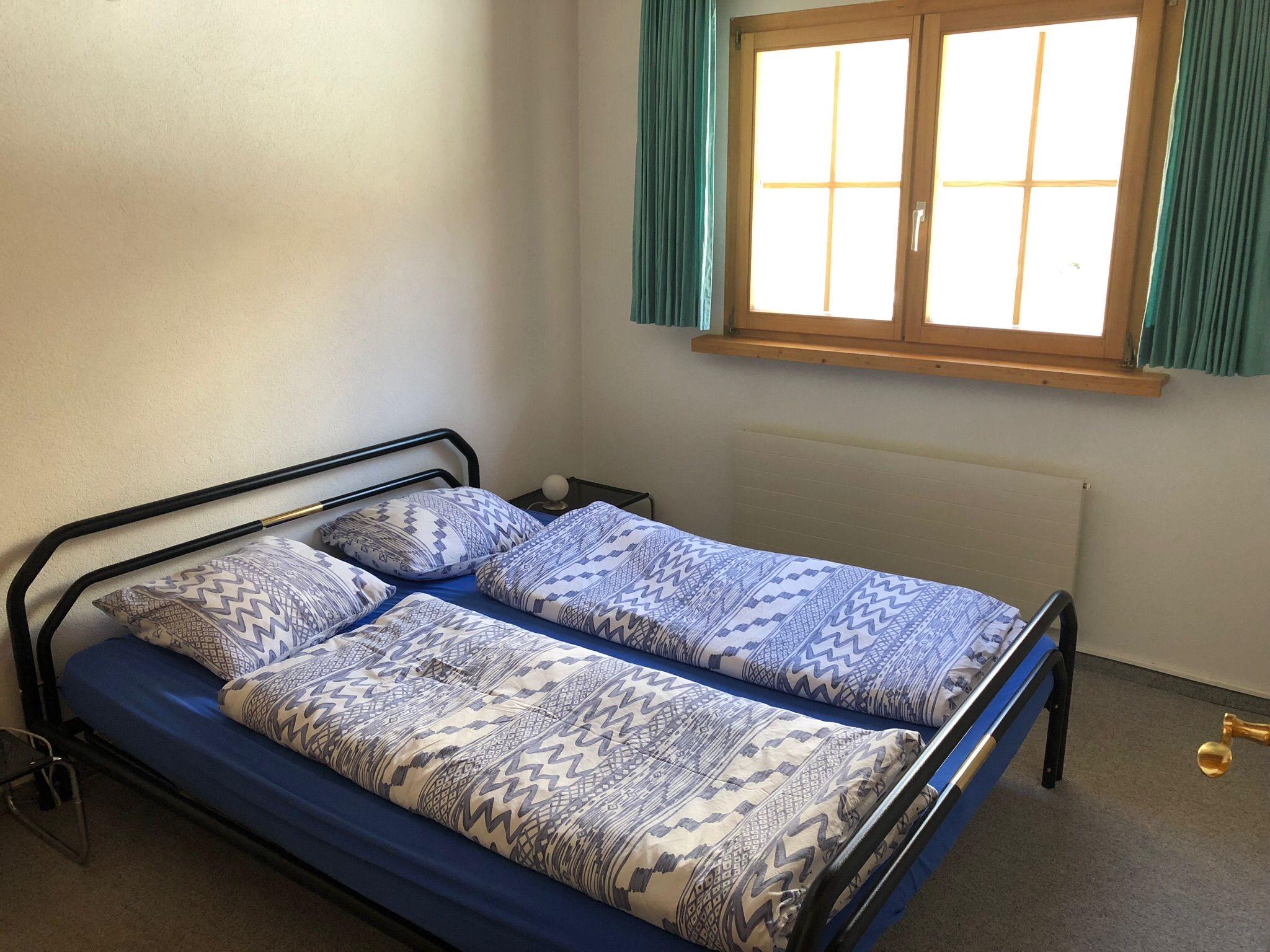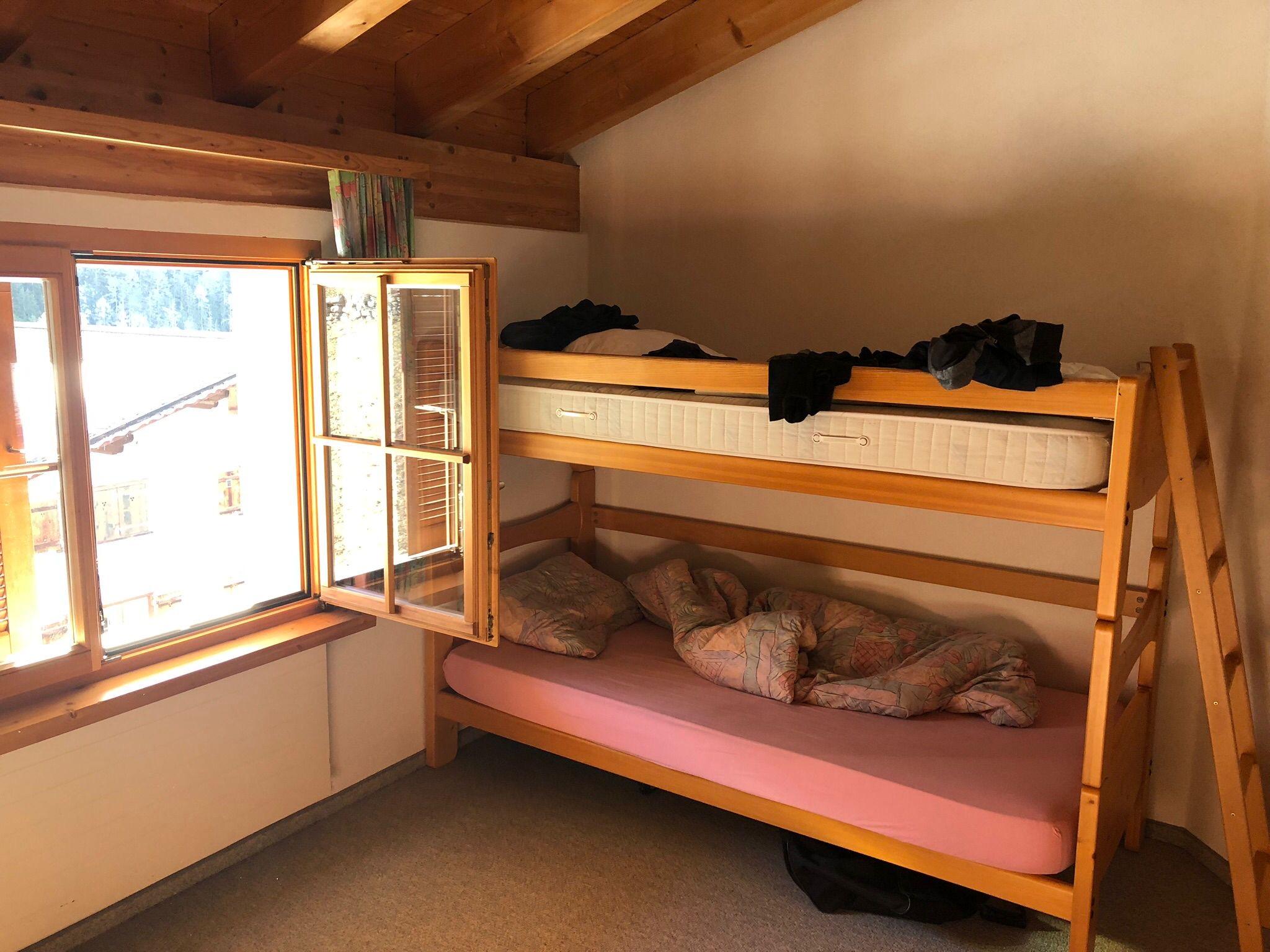Grosser Balkon, Geschirrspühler, Cheminée. Im Elternschlafzimmer hat es ein Bett 140 x 190, im Kinderschlafzimmer stehen 2 Kajütenbetten 90 x 190, somit 4 Schlafgelegenheiten, total 6 Betten. Sauna und Aufenthaltsraum mit Tischtennis sowie ein Parkplatz in der Tiefgarage.