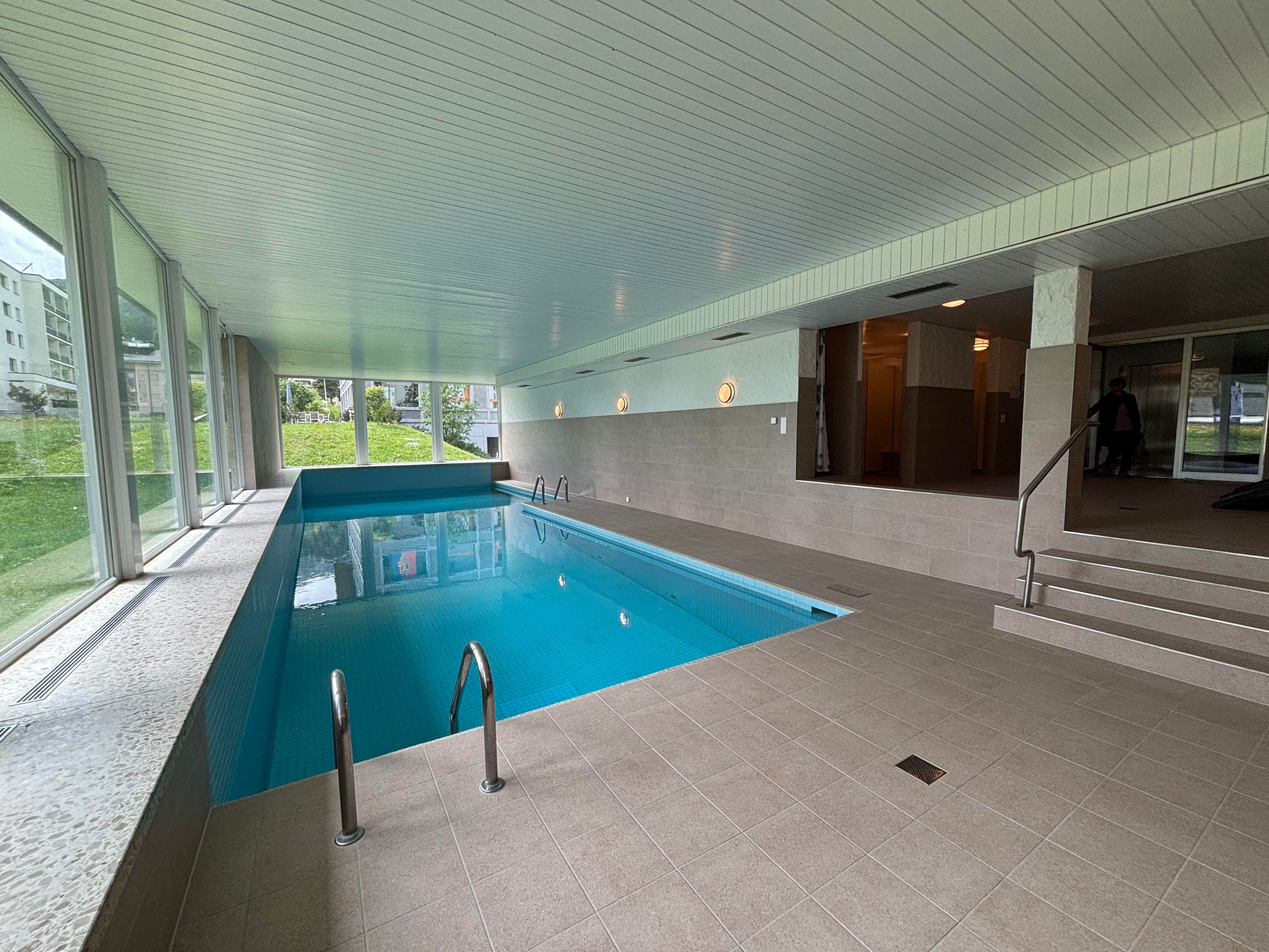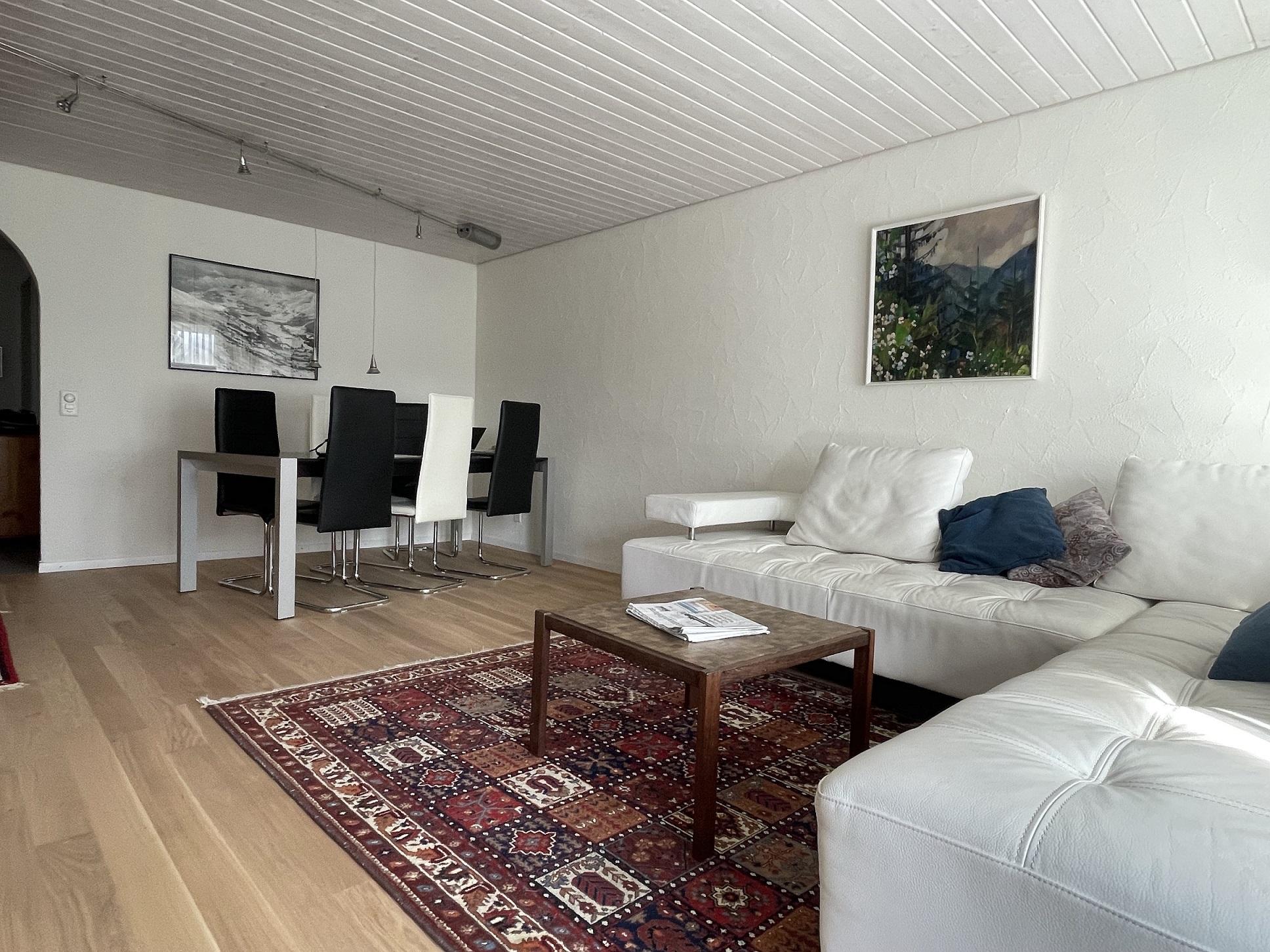 Die 3.5 Zimmerwohnung (mit Hallenbad und gratis WLAN) befindet sich an sehr zentraler und ruhiger Lage, direkt beim Skischulplatz und nahe beim Gratissportbus. Pisten bis zum Haus. Einkaufen, Eisbahn, Tennishalle, Restaurants in der Nähe. Im Sommer Wanderwege, Spielplätze, kinderfreundliches Strandbad beim Lido (1200 m), Golfplatz (2.5 km). E-Ladestation am Haus vorhanden.