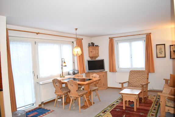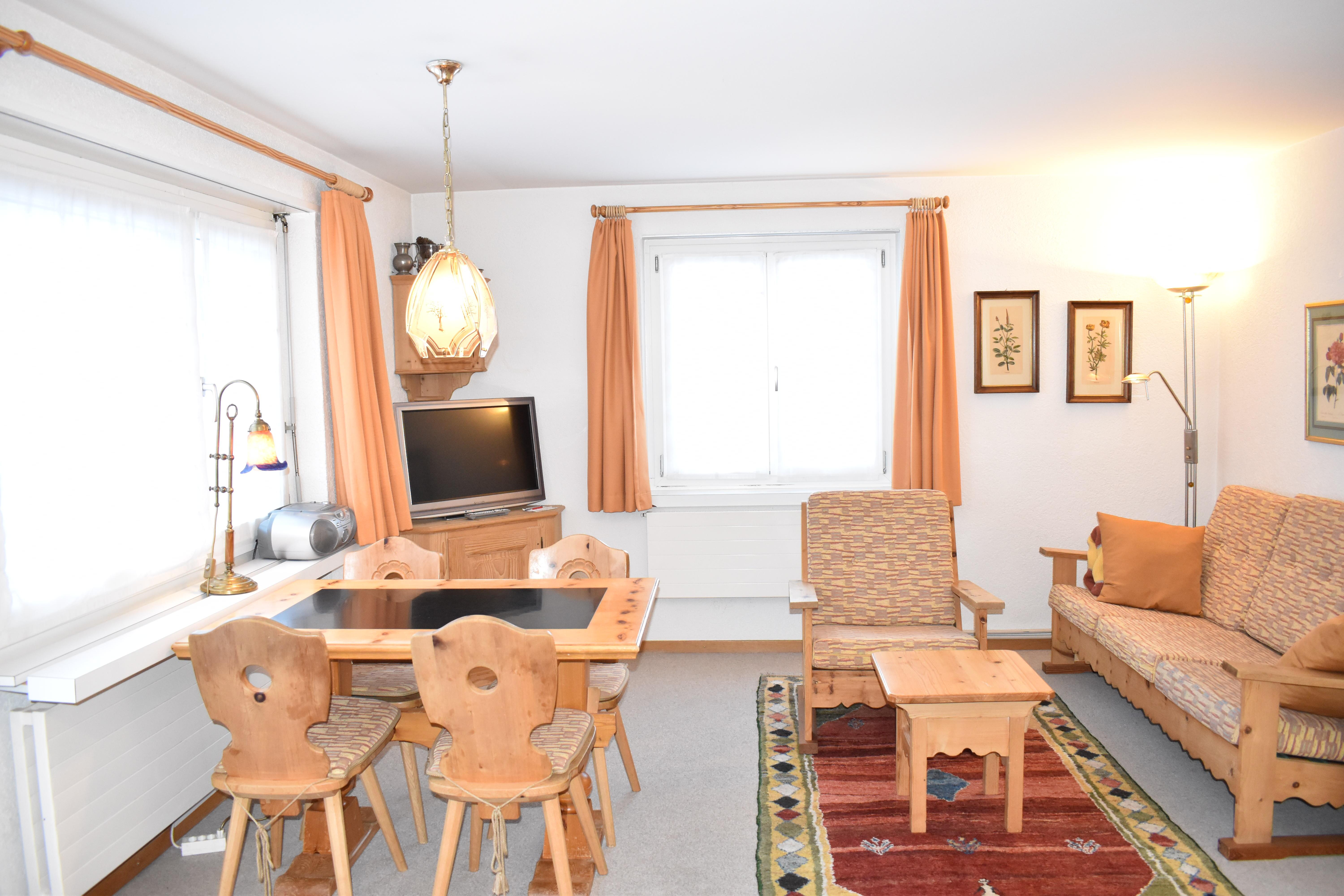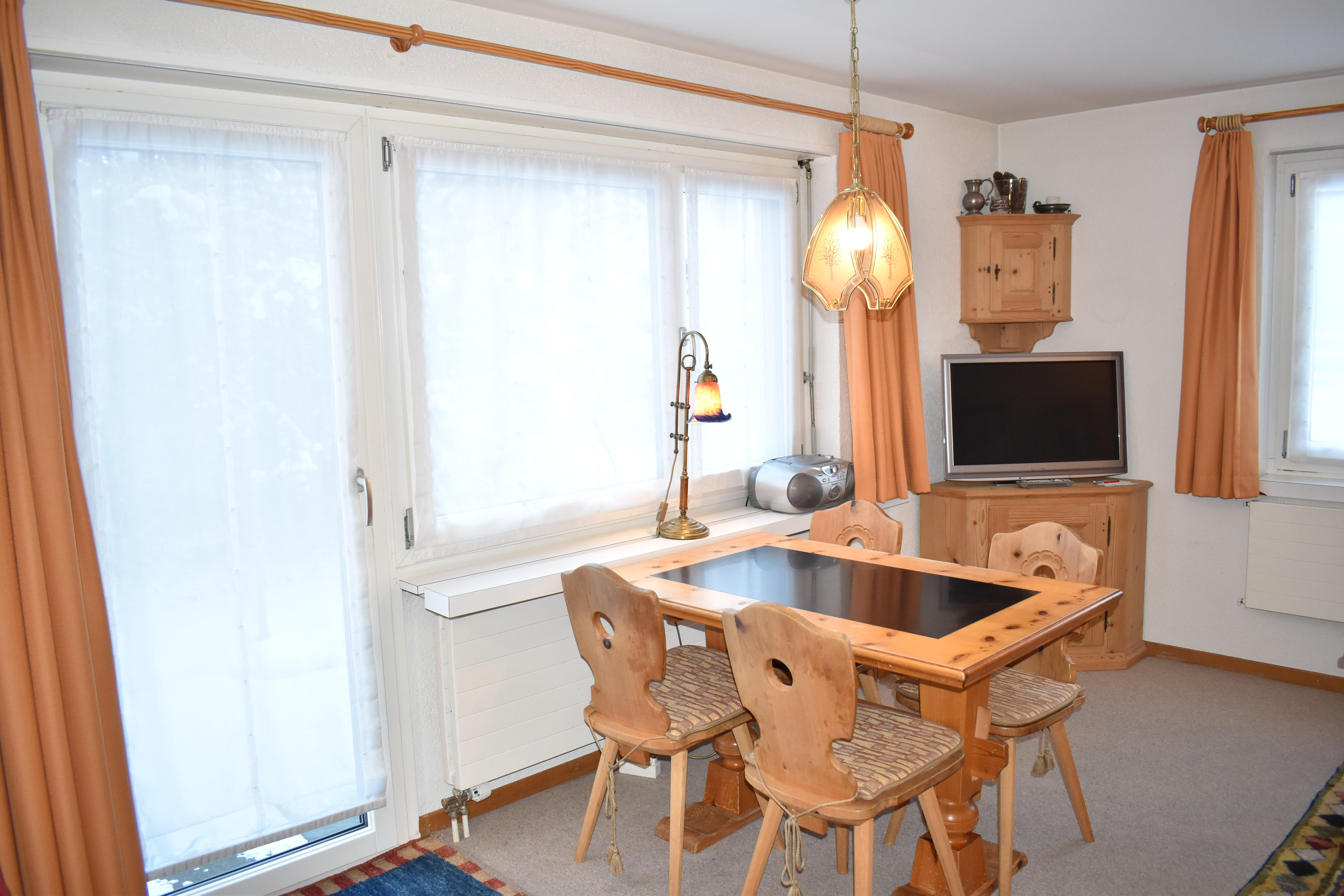 Die Küche ist im Wohnzimmer integriert, ist aber komfortabel eingerichtet. Der Sitzplatz ist nach Süden ausgerichtet. Grosses Schlafzimmer. Kinderbett vorhanden. Skiraum und Garten stehen zur Mitbenützung bereit. Ein Garagenstellplatz ist inklusive.
