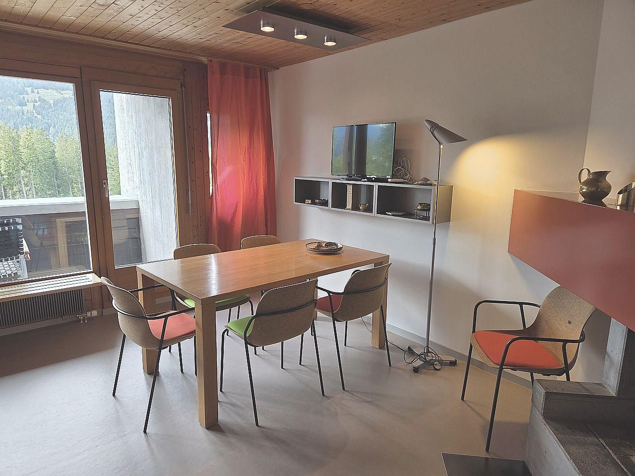 Renovierte 3- Zimmer-Wohnung (ca. 67 m²) im Haus Curtschin. Die Wohnung verfügt über ein grosses Wohnzimmer mit integrierter Einbauküche (Geschirrspüler, Backofen, Kühlschrank). Offener Kamin, Balkon, TV und W-Lan. Ein Schlafzimmer mit drei einzelnen Betten und ein Schlafzimmer mit einem Doppelbett. Dusche, separates WC.