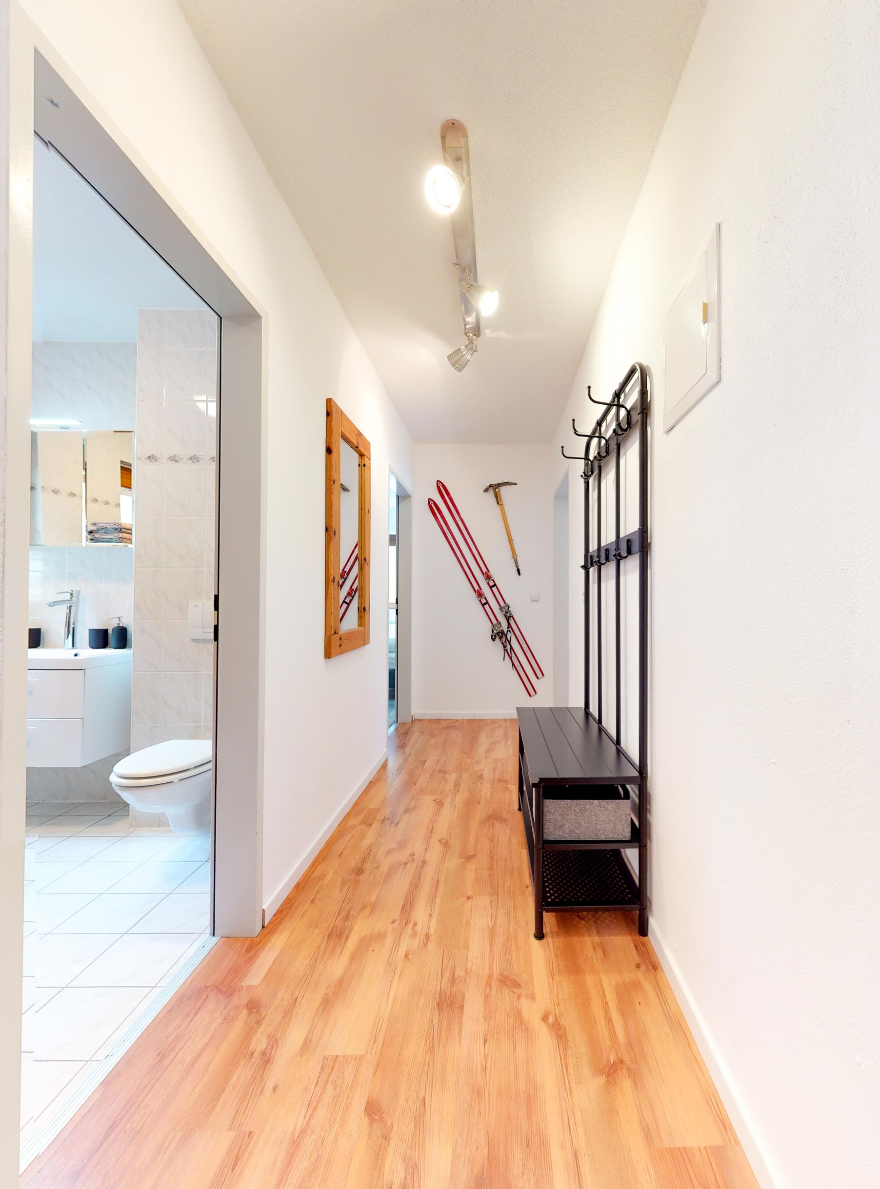 Unsere Ferienwohnung Kathrin (ca. 60m²) besteht aus 2 Doppelzimmern davon 1 Doppelzimmer inkl. TV, einem Badezimmer mit Badewanne und integrierter Dusche/WC inkl. Haarföhn, einem Wohn- Ess- Kochbereich mit 4 Cerankochfeldern inkl. Backrohr, Geschirrspüler, Kühlschrank inkl. Gefrierfach, Mikrowelle, Kaffeefiltermaschine, Wasserkocher, Toaster. Mit Balkon. Skiraum mit Schuhtrockner.