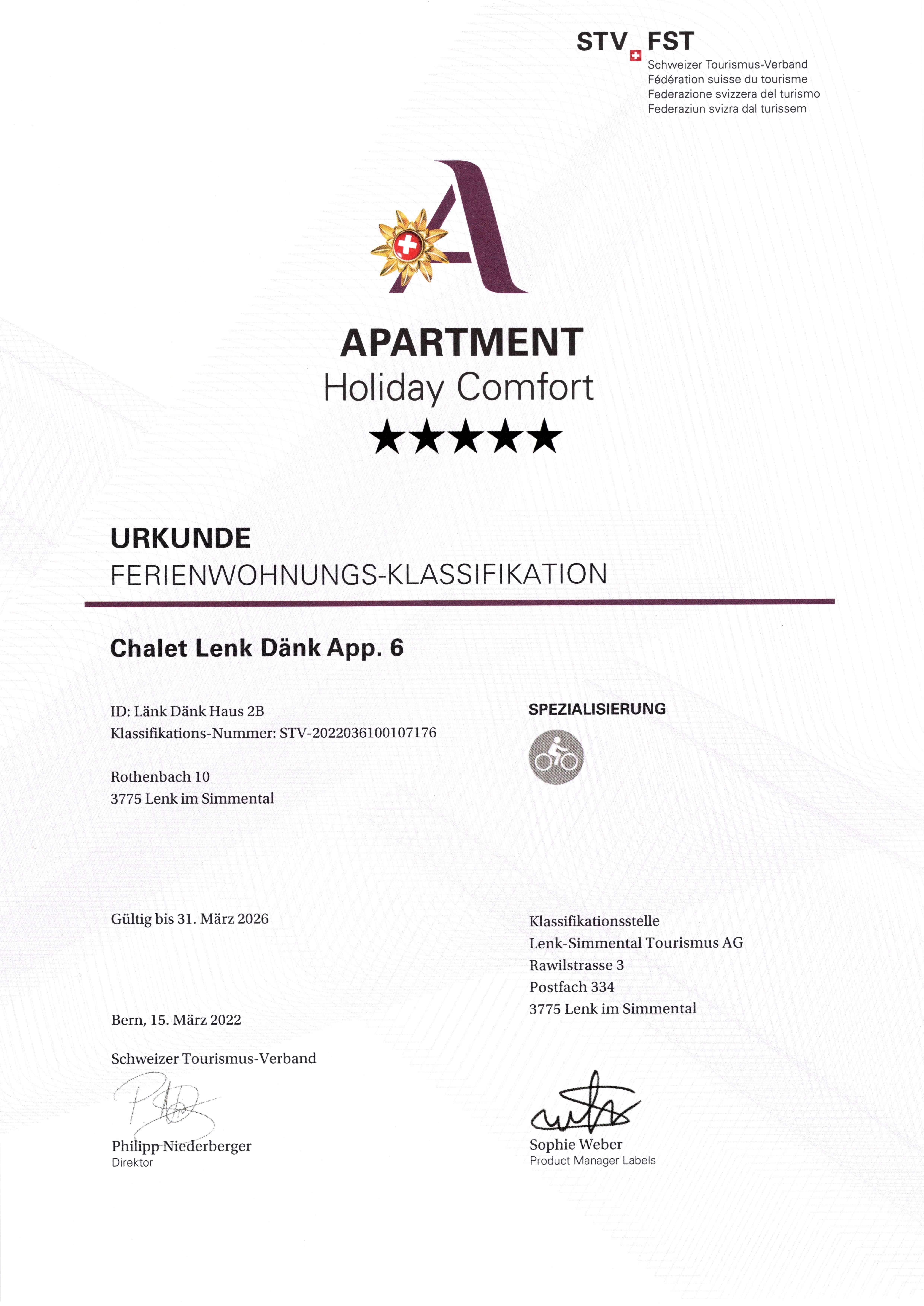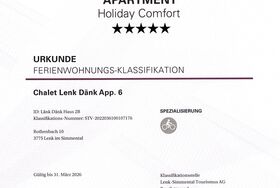 Die Wohnung befindet sich in einem modernen 6-Parteien-Chalet (Baujahr 2007), in einer Park-ähnlichen Überbauung gegenüber der Luftseilbahn Metsch. Die Infrastruktur entspricht den Bedürfnissen des anspruchsvollen Feriengastes: Tiefgarage, Gäste-Parkplatz, Skikeller, beheizbare Skischuh-Halter, Personenaufzug, Internet-Anschluss. Nur 1 Minute Fussweg trennen den Ski- und Wandersportler vom Einstieg in die Wintersport-Arena Adelboden/Lenk.