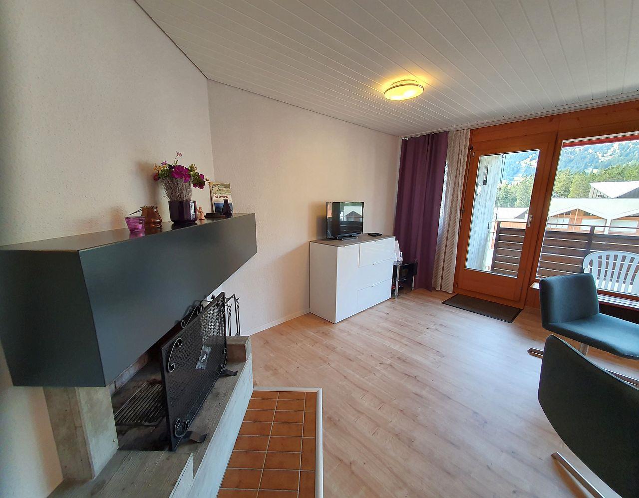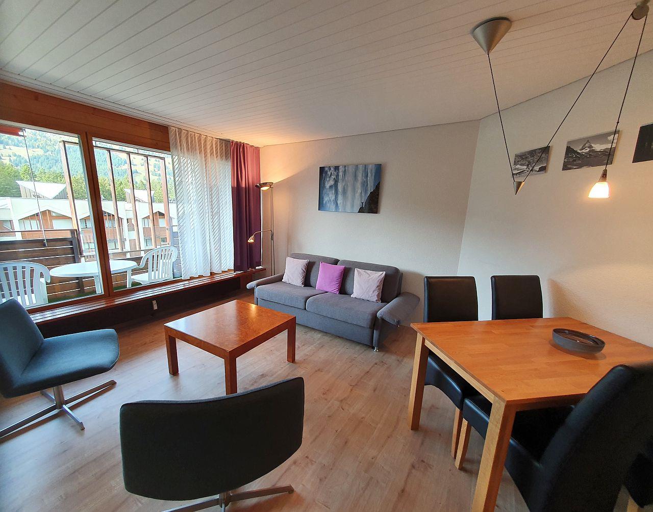 1.5- Zimmer-Wohnung (ca. 49 m²) im Haus Curtschin. Die Wohnung verfügt über ein grosses Wohnzimmer mit integrierter Einbauküche (Geschirrspüler, Backofen, Kühlschrank). Offener Kamin, Balkon, TV und W-Lan. Schlafraum (kein getrennter Raum zum Wohnzimmer) mit Doppelbett (Fenster auf Korridor, keine Frischluft-Zufuhr!) und ein Doppelsofabett im Wohnzimmer. Bad/WC.