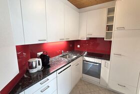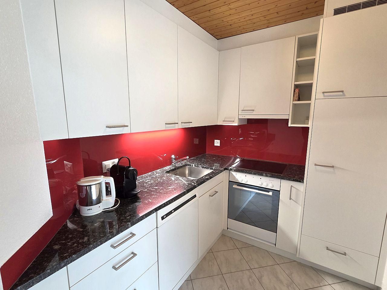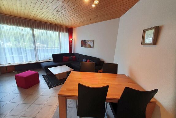 2- Zimmer-Wohnung (ca. 51 m²) im Haus Curtschin. Die Wohnung verfügt über ein grosses Wohnzimmer mit integrierter Einbauküche (Geschirrspüler, Backofen, Kühlschrank). Balkon, TV und W-Lan. Ein separates Schlafzimmer mit Doppelbett und zwei Schlafmöglichkeiten im Wohnzimmer (Schrankbett). Dusche/WC.