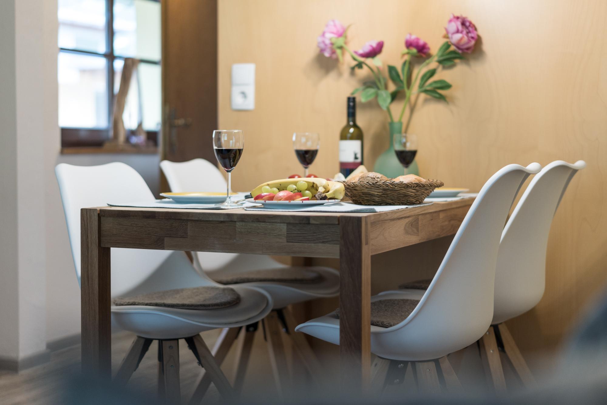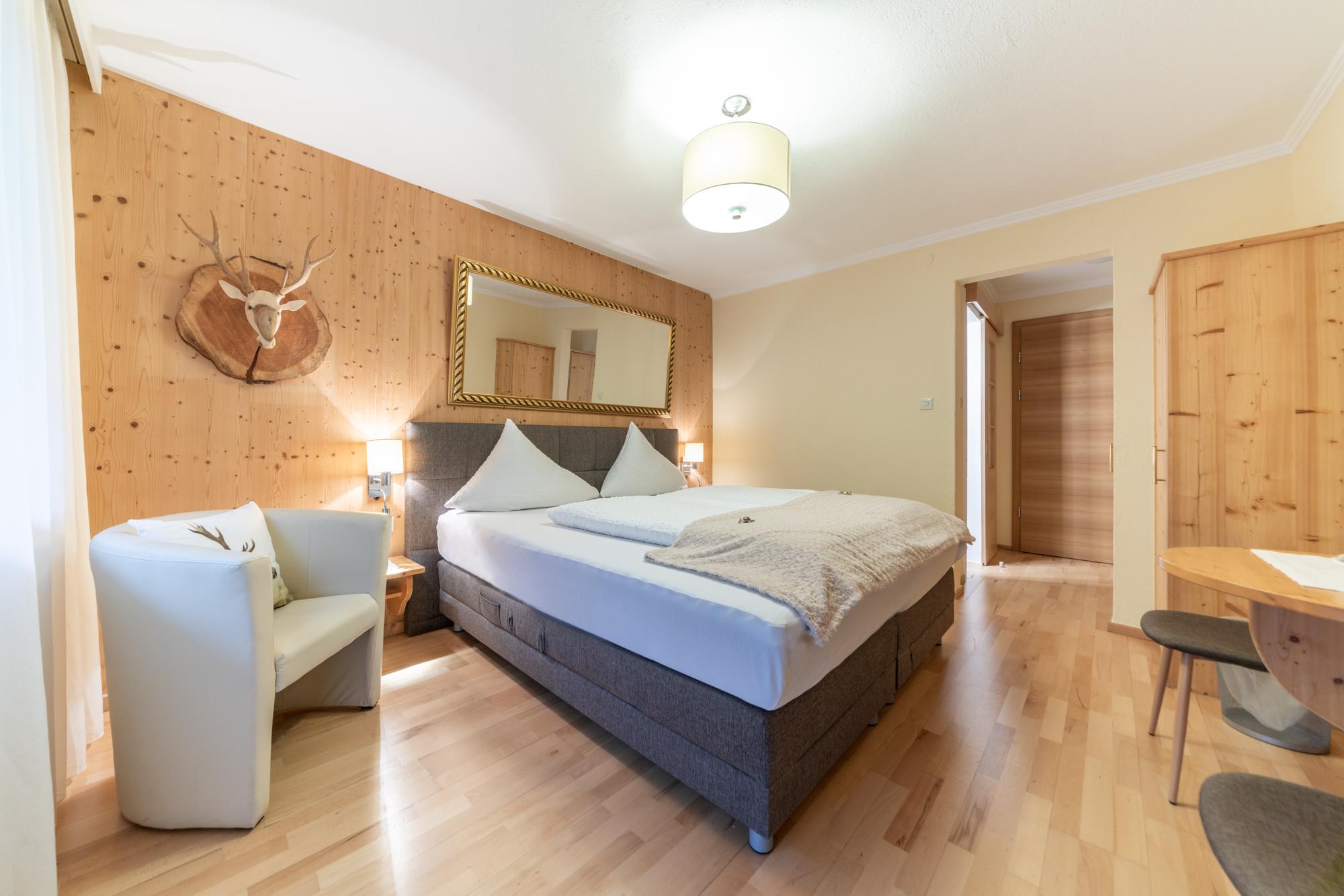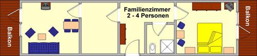 geräumiges Doppelzimmer, Badezimmer mit Dusche/WC, SAT/ TV (Flachbildfernseher), zusätzlich noch ein Wohn- Schlafraum mit ausziehbarer Couch und SAT/TV (Flachbildfernseher). Es sind zwei separate Räume mit Verbindungstür, getrennt durch einen Vorraum. Ideal für Familien. Frühstücksbüfett