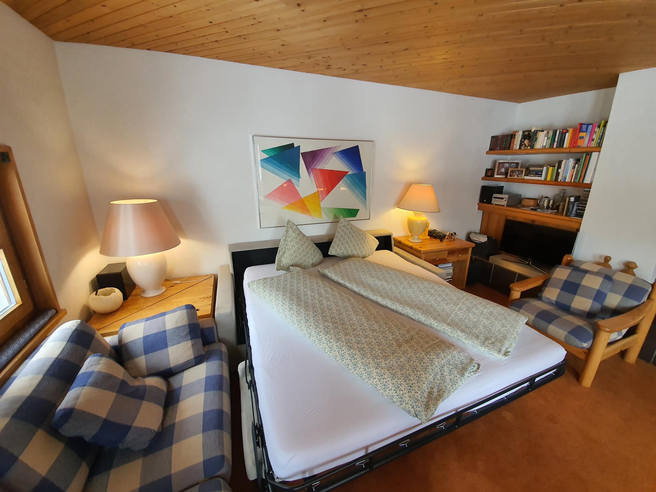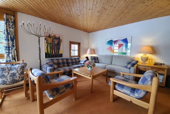 2 1/2 - Zimmerwohnung für 4 Personen, bestehend aus Wohnzimmer mit Schlafsofa für 2 Personen und integrierter Küche. Schlafzimmer mit 2 Betten (Doppelbett), Bad/WC und Südwestbalkon.