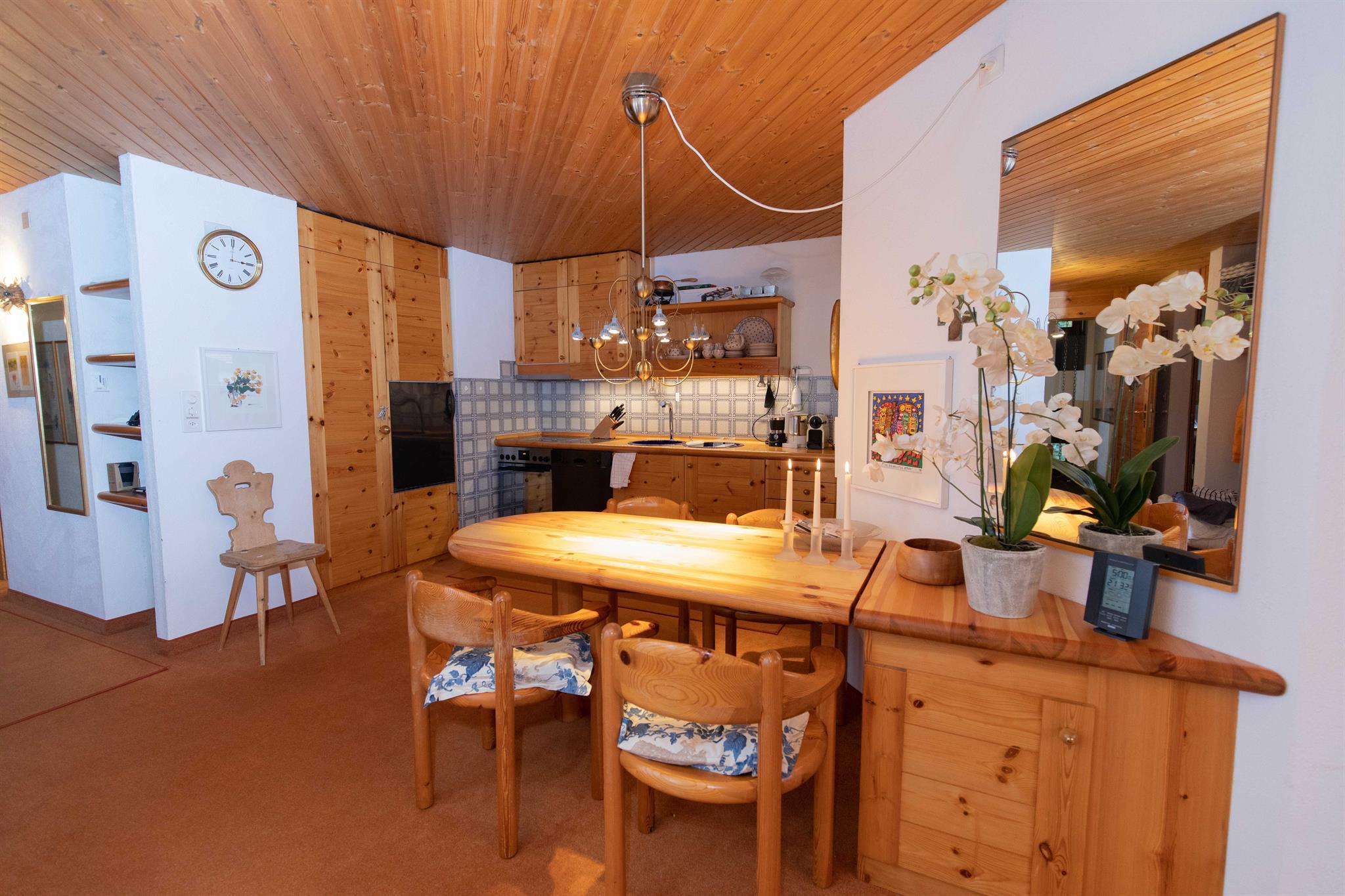 Die Wohnung bietet Platz für max. 4 Personen. Der geräumige Balkon mit Südwest- Ausrichtung lässt für sonnenverwöhnte Gäste keine Wünsche offen. Als Gast dieser Ferienwohnung kommen Sie in den Genuss der Nutzung des Wellnessbereichs des Hotel Schweizerhof. Der Zutritt zum Hallenbad und zum Familiendampfbad ist im Preis inbegriffen, die Nutzung des Hamams/Saunas ist nur gegen Aufpreis möglich.
