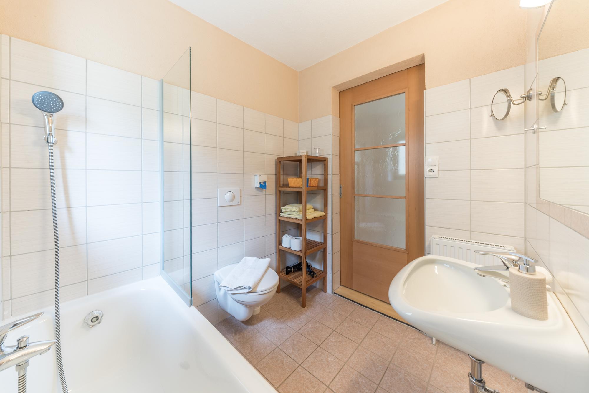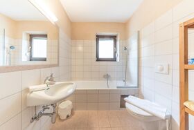 Geräumiges und gemütlich, eingerichtetes Einbettzimmer mit Badewanne und WC, SAT/TV (Flachbildfernseher) und Safe, Balkon, Frühstücksbüfett.