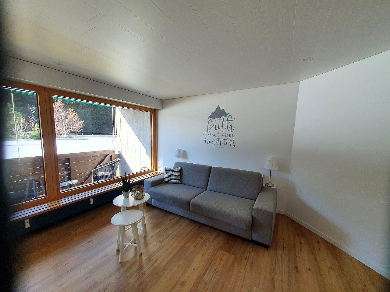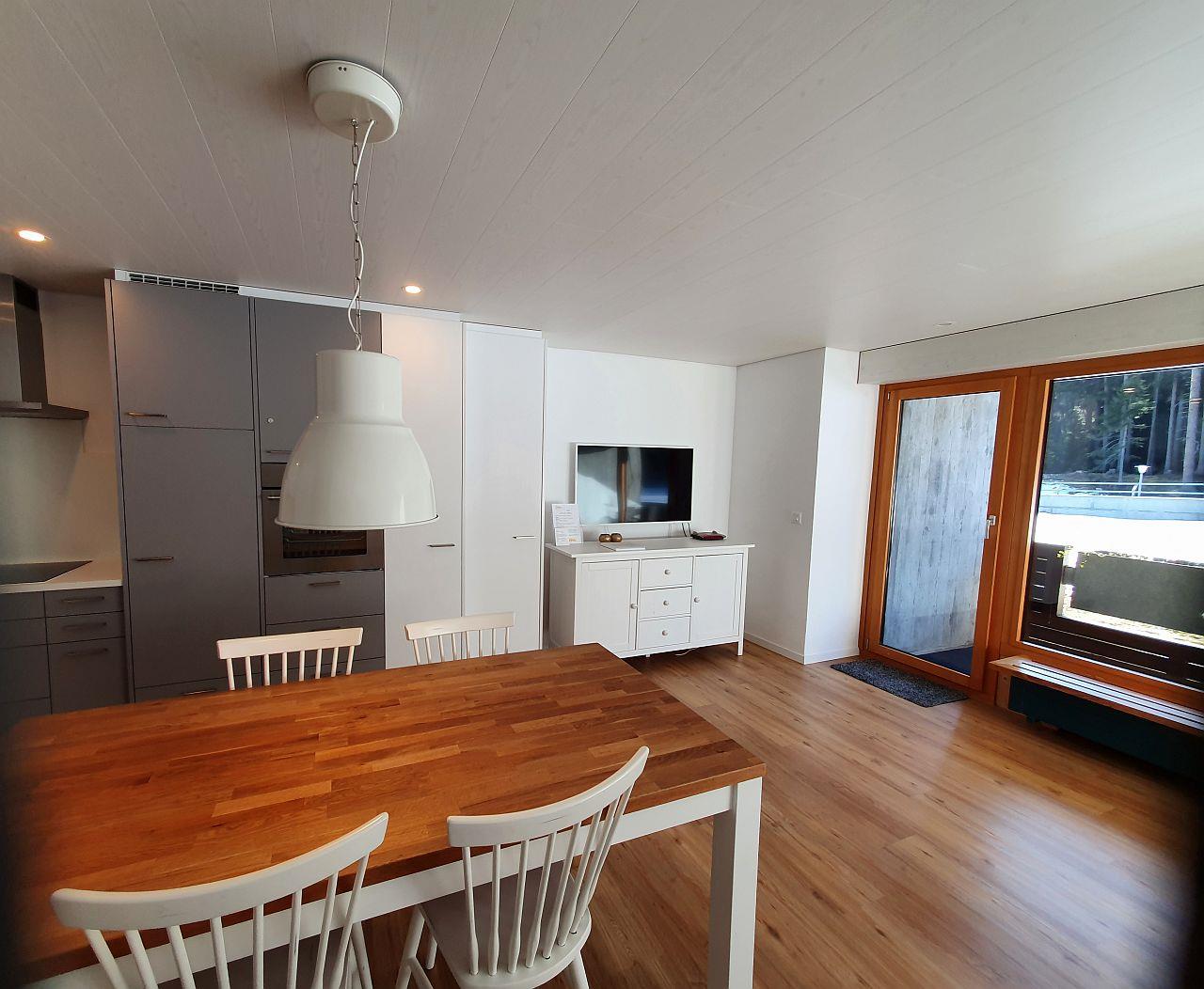 Renovierte 1.5- Zimmer-Wohnung (ca. 48 m²) im Haus Tavanera. Die Wohnung verfügt über ein grosses Wohnzimmer mit integrierter Einbauküche (Geschirrspüler, Backofen, Kühlschrank). Balkon, TV und W-Lan. Zwei Schlafmöglichkeiten im Wohnzimmer (Doppelschlafsofa) und ein Kajütenbett und ein Hochbett in separatem Zimmer. Dusche/WC.
