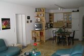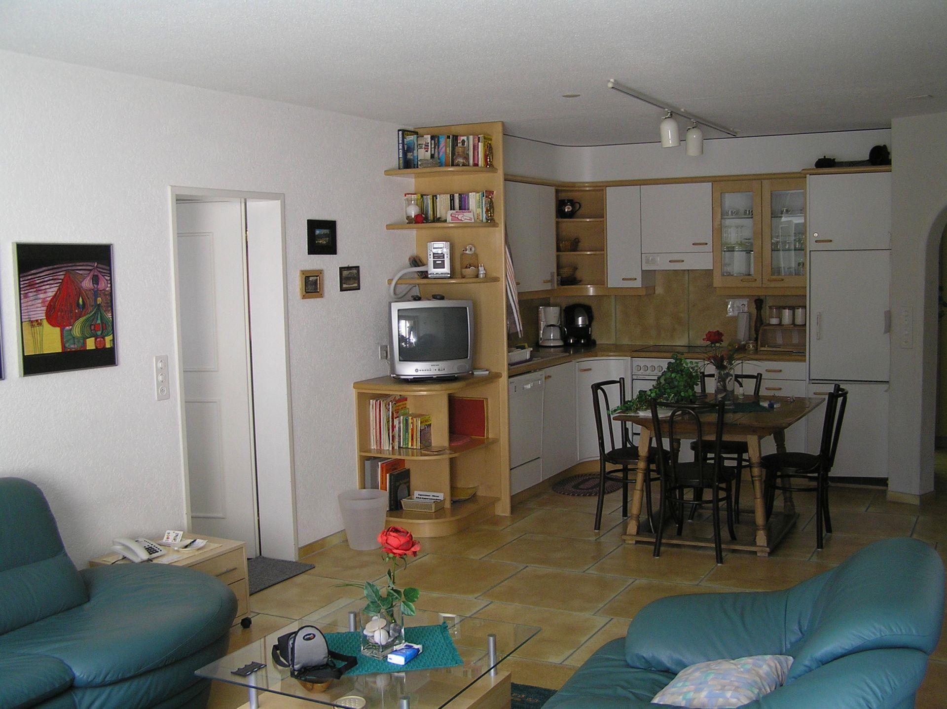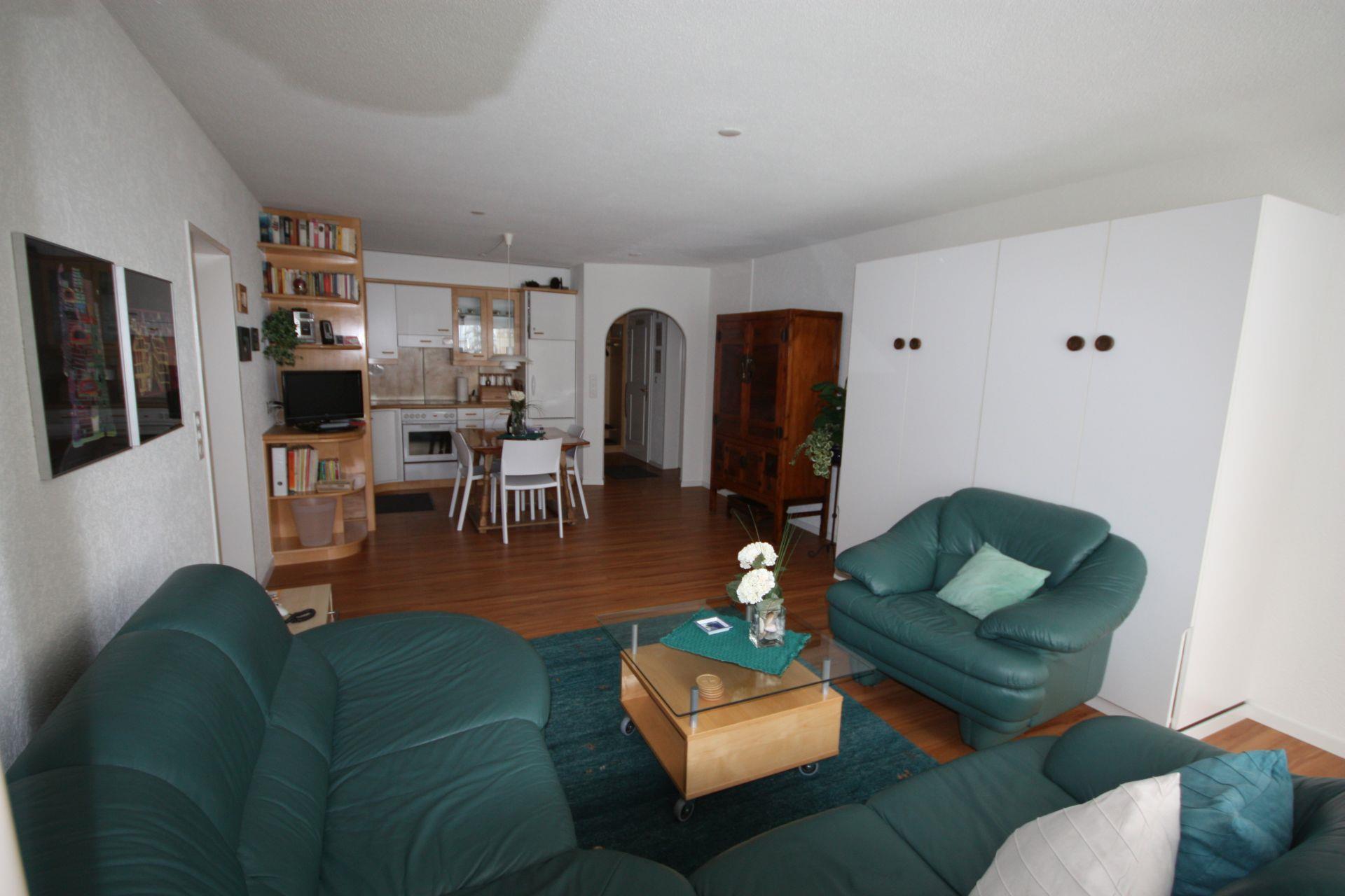 2 1/2 Zimmerwohnung mit offener Küche, separatem WC/Bidet und Sommerregen Dusche/Lavabo. Die Küche ist mit Geschirrspüler, Backofen Keramikherd, Kaffeemaschine und allen wichtigen Utensilien ausgestattet (Toaster, Fondue-Rechaud usw). Balkon 8m lang.