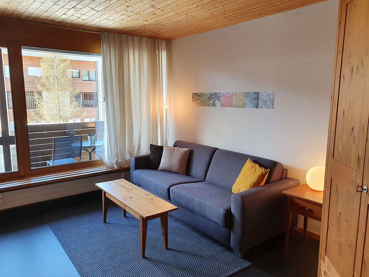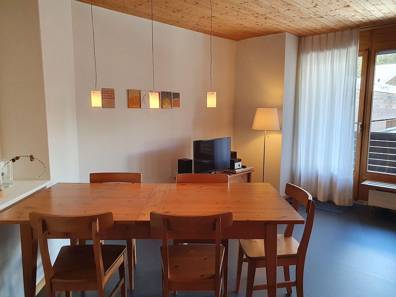 1.5- Zimmer-Wohnung (ca. 48 m²) im Haus Valatscha. Die Wohnung verfügt über ein grosses Wohnzimmer mit integrierter Einbauküche (Geschirrspüler, Backofen, Kühlschrank). Balkon, TV und W-Lan. Eine Schlafmöglichkeit im Wohnzimmer (Sofabett) und ein Kajütenbett in separatem Zimmer. Bad/WC.