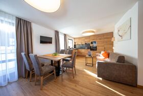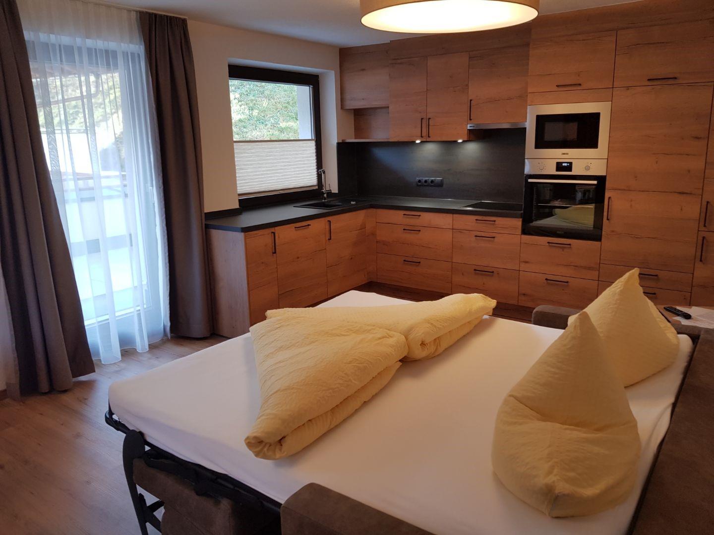 Das Appartement verfügt über 1 Schlafzimmer mit Balkon mit herrlichem Ausblick über Sölden, Kabel TV und Safe. 2 Badezimmer mit Dusche/WC und Föhn. Gemütliches Wohn- schlafzimmer mit Essbereich voll ausgestatteter Küche und Südterrasse. Freies W-Lan. Größe ca. 65 m². täglich Frischer Brötchenservice
