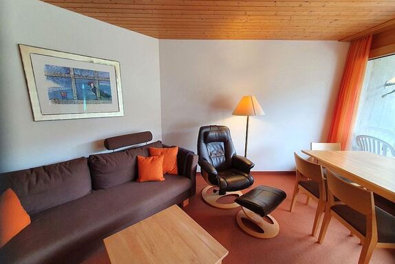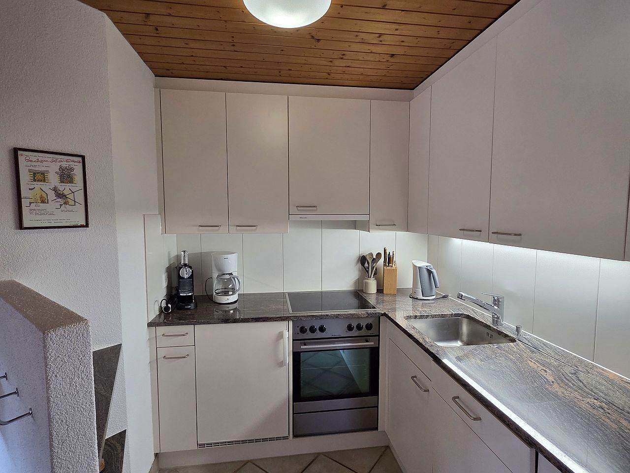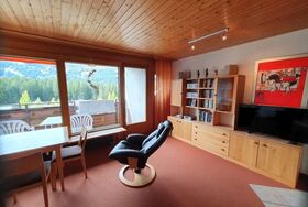 Renovierte 1.5- Zimmer-Wohnung (ca. 49 m²) im Haus Curtschin. Die Wohnung verfügt über ein grosses Wohnzimmer mit integrierter Einbauküche (Geschirrspüler, Backofen, Kühlschrank). Balkon, TV und W-Lan. Schlafraum (kein getrennter Raum zum Wohnzimmer) mit Doppelbett (Fenster auf Korridor, keine Frischluft-Zufuhr!) und Schlafsofa im Wohnzimmer. Bad/WC.