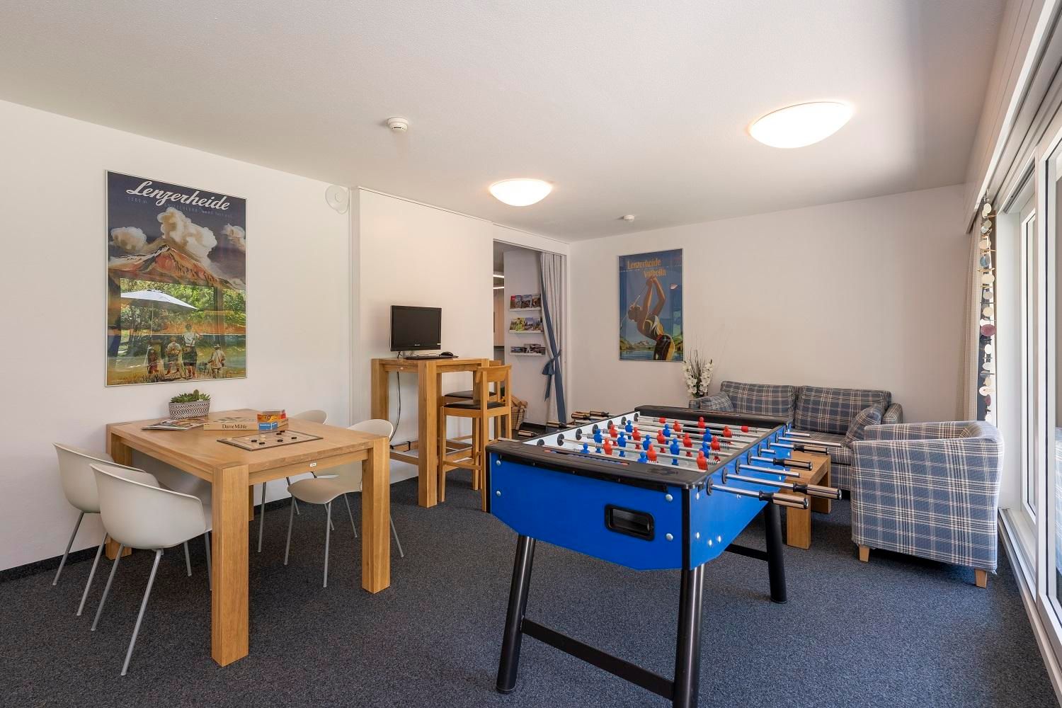 Hallenbad / Sauna / Tischtennis / Tischfussball / Billard (gegen Gebühr) / Liegewiese mit Grill und Kinderspielplatz / Computer mit Internetzugang (kostenlos) / W-Lan (kostenlos) / Skiraum mit Skischuhwärmer / Abschliessbare Tiefgarage für Bikes / Bikewaschplatz / Waschmaschine und Trockner / Rollstuhlgängigkeit / Garage und Aussenparkplätze