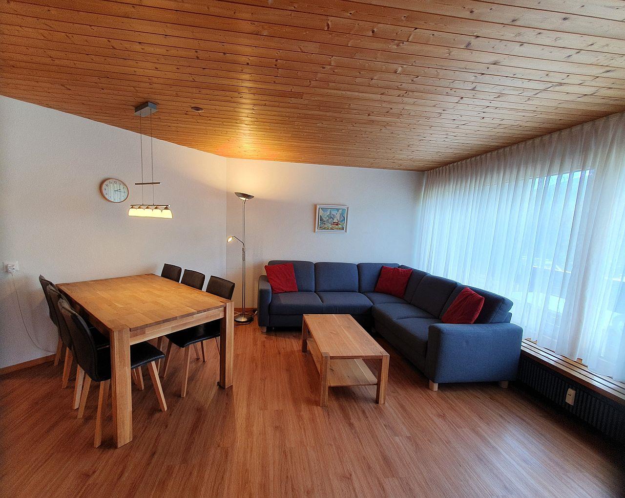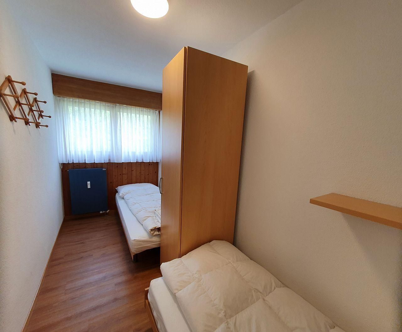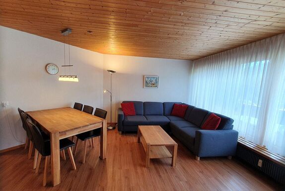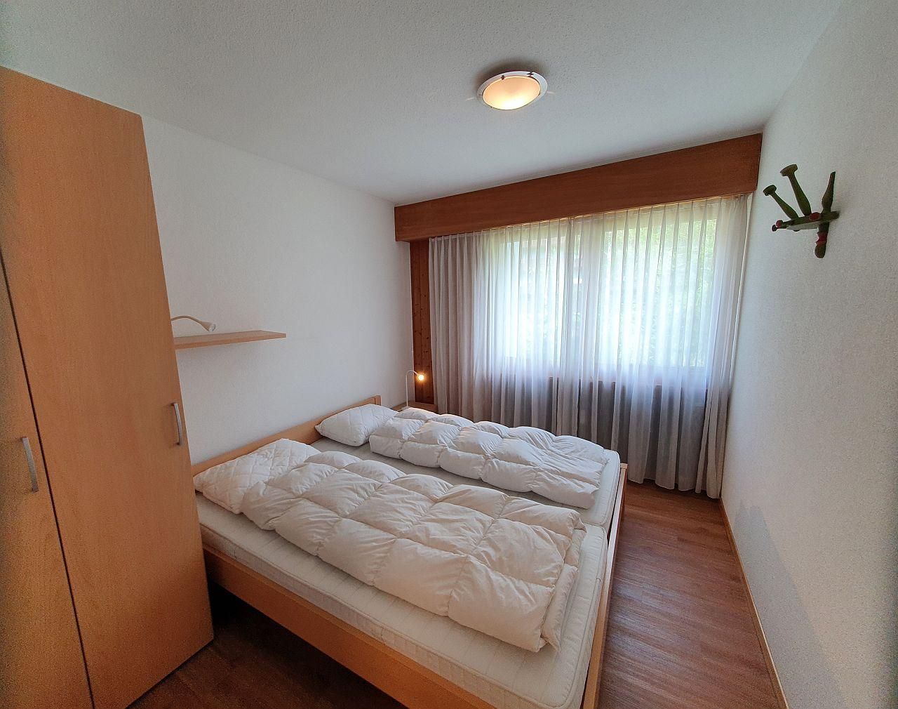 3- Zimmer-Wohnung (ca. 62 m²) im Haus Valatscha. Die Wohnung verfügt über ein grosses Wohnzimmer mit integrierter Einbauküche (Geschirrspüler, Backofen, Kühlschrank). Offener Kamin, Balkon, TV und W-Lan. Ein Schlafzimmer mit zwei Einzelbetten und ein Schlafzimmer mit Doppelbett. Bad, separates WC.