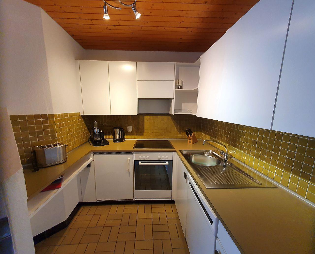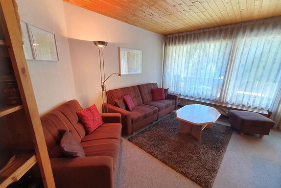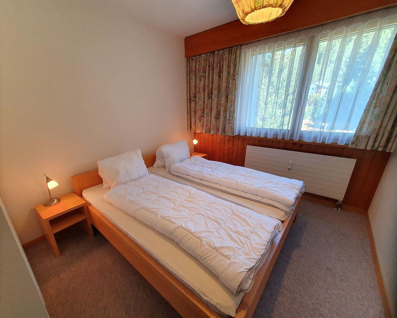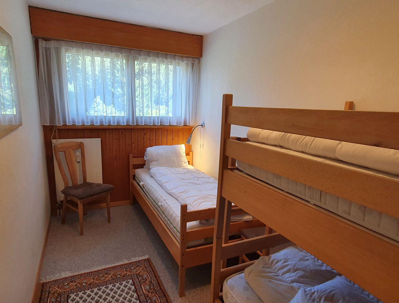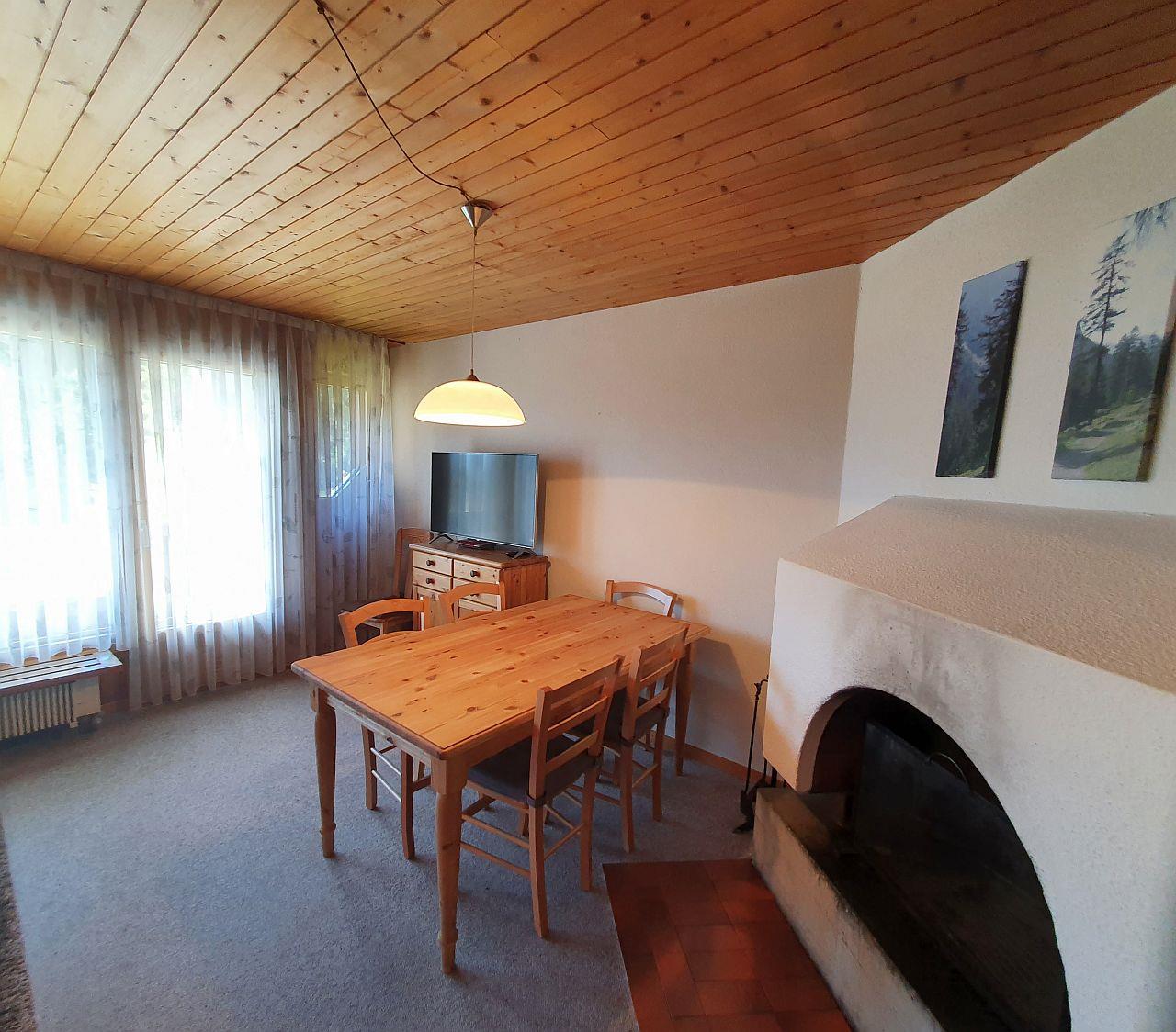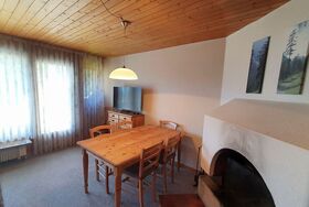 3- Zimmer-Wohnung (ca. 59 m²) im Haus Tavanera. Die Wohnung verfügt über ein grosses Wohnzimmer mit integrierter Einbauküche (Geschirrspüler, Backofen, Kühlschrank). Offener Kamin, Balkon, TV und W-Lan. Ein Schlafzimmer mit einem Kajütenbett und einem Einzelbett und ein Schlafzimmer mit Doppelbett. Bad, separates WC.