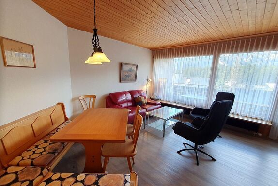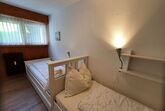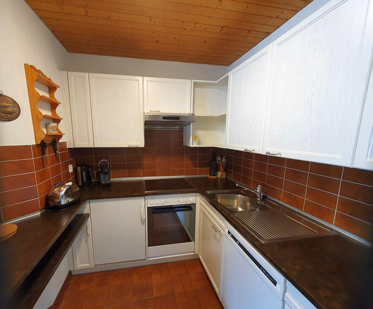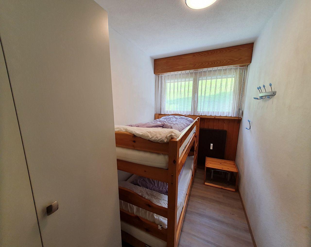 4- Zimmer-Wohnung (ca. 72 m²) im Haus Curtschin. Die Wohnung verfügt über ein grosses Wohnzimmer mit integrierter Einbauküche (Geschirrspüler, Backofen, Kühlschrank). Offener Kamin, Balkon, TV und W-Lan. Drei Schlafzimmer, eines mit Doppelbett, eines mit zwei Einzelbetten und eines mit Kajütenbett. Dusche, separates WC.