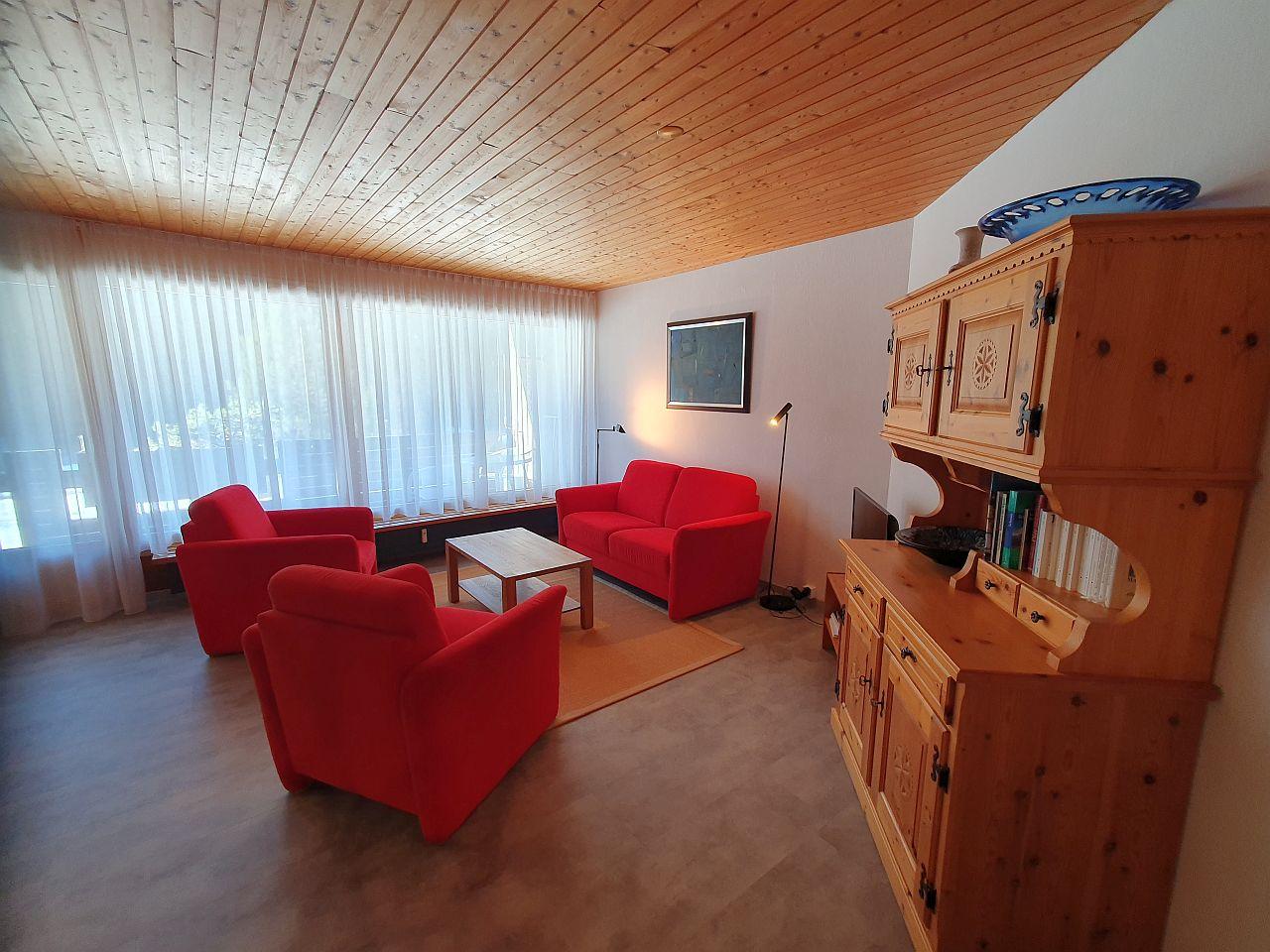 Renovierte 3- Zimmer-Wohnung (ca. 67 m²) im Haus Tavanera. Die Wohnung verfügt über ein grosses Wohnzimmer mit integrierter Einbauküche (Geschirrspüler, Backofen, Kühlschrank). Offener Kamin, Balkon, TV und W-Lan. Ein Schlafzimmer mit Doppelbett und ein Schlafzimmer mit Kajütenbett und einem einzelnen Bett ausgestattet. Die Wohnung ist jedoch für max. 4 Personen zugelassen. Bad, separates WC.