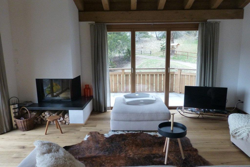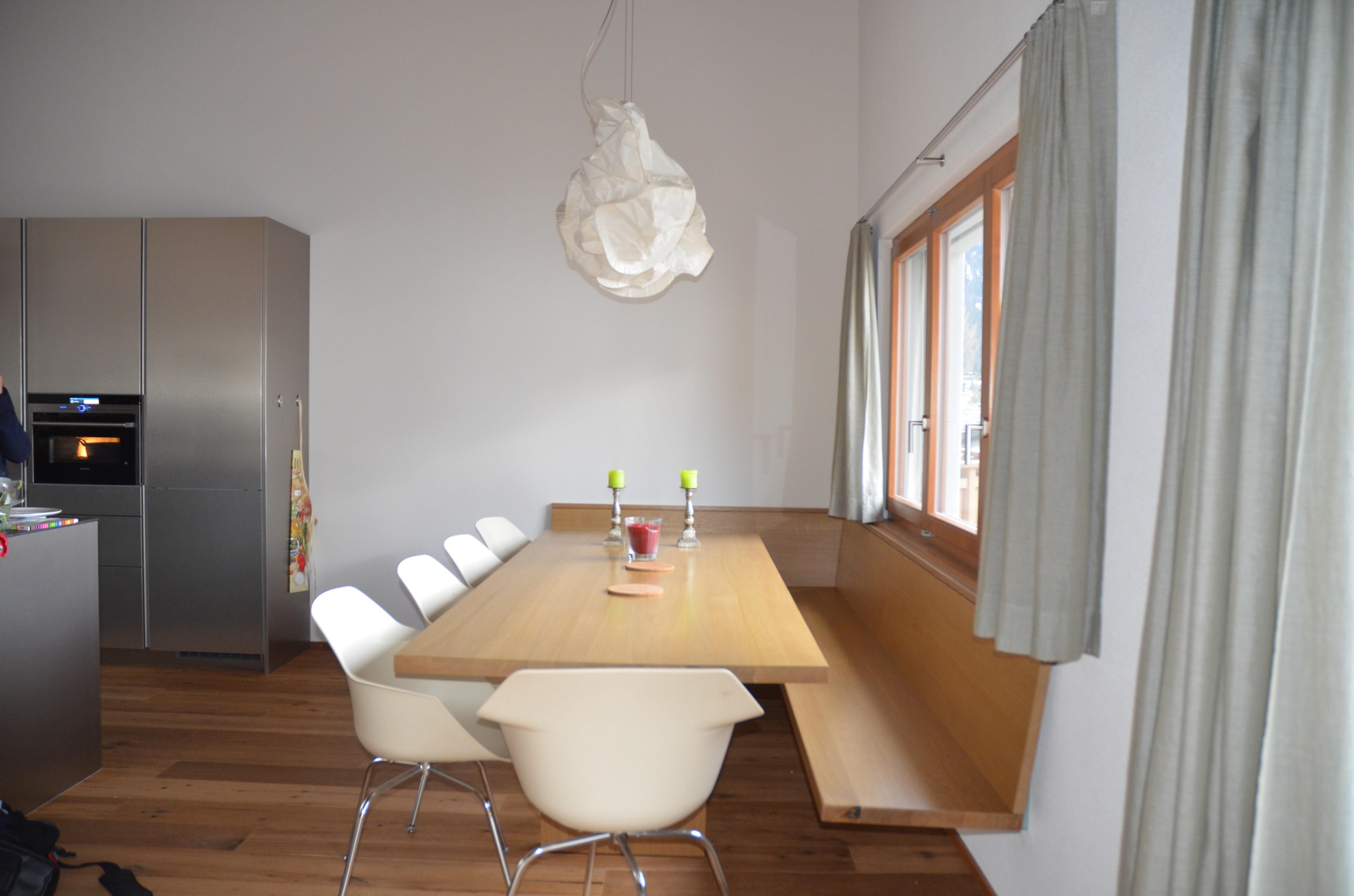 Ausstattung der Wohnung: Wohn-/Esszimmer mit integrierter Küche, Cheminée, free W-LAN Internet/Smart TV/Radio, Luxury Kochecke mit Backofen/Microwelle, Fondue-/Raclette-Set, Nespresso Kaffee-Maschine und Geschirrspülmaschine, Esstisch für 8-10 Personen, 3 Doppelzimmer, 1 Galeriezimmer. Design Bad/Dusche/WC/Lavabo, zweites Design Bad/WC/Lavabo, Südbalkon. Nichtraucherwohnung, keine Haustiere.