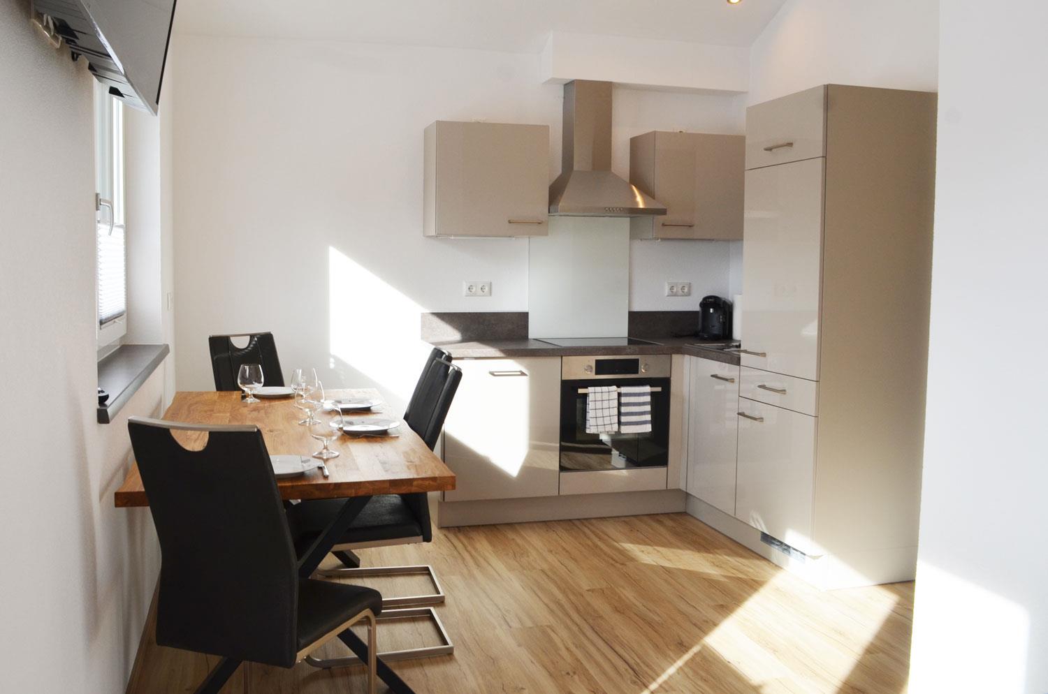Die Küche ist komplett eingerichtet und verfügt über einen Kühlschrank mit Gefriermöglichkeit,