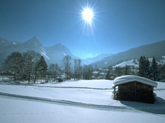 Das Appartementhaus „Zugspitzappartements“ befindet sich in ruhiger Lage mit freiem Blick auf die umliegenden Berge.