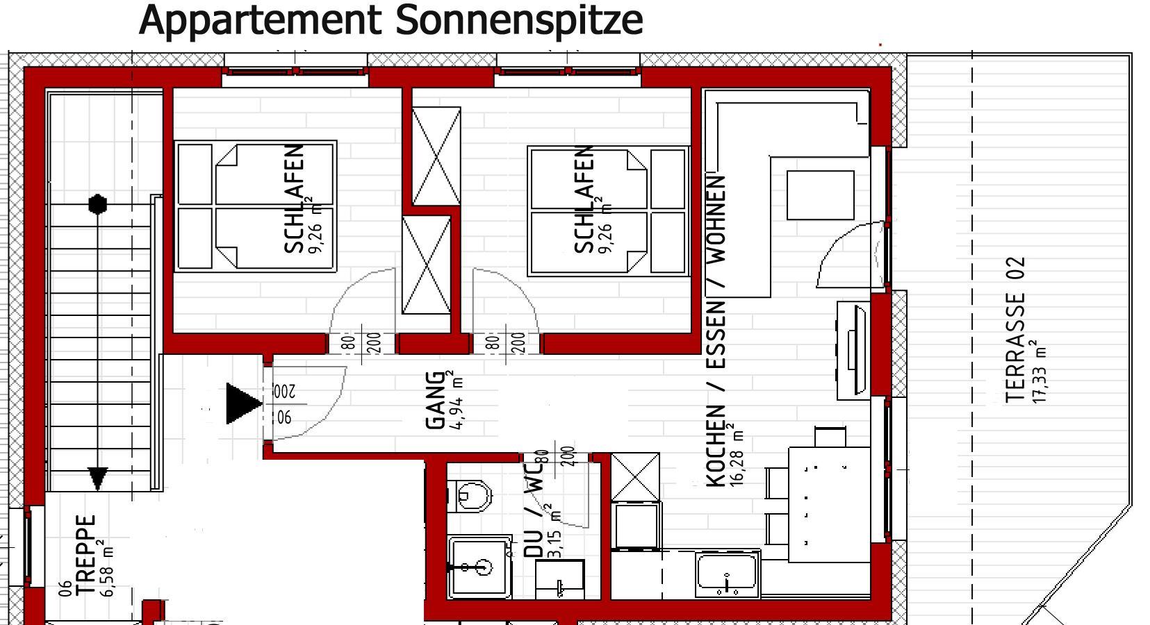 Das Appartement bietet Platz für 2-4 Personen und befindet sich im ersten Stock unsres Appartementhauses.