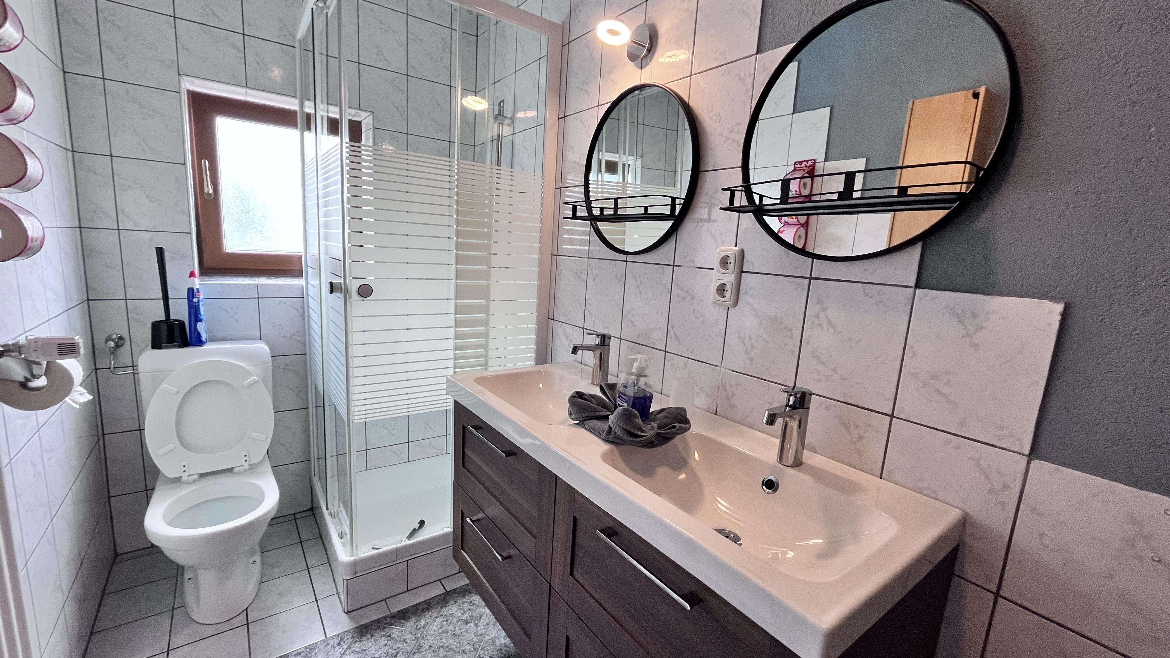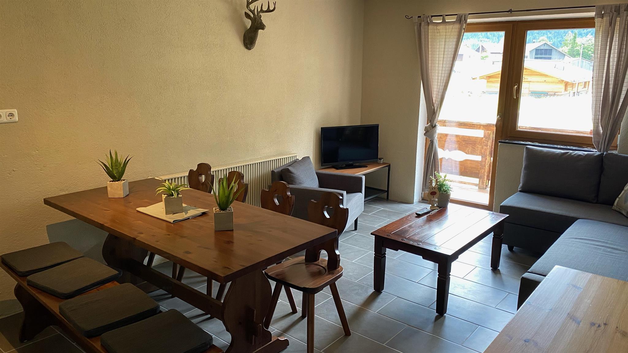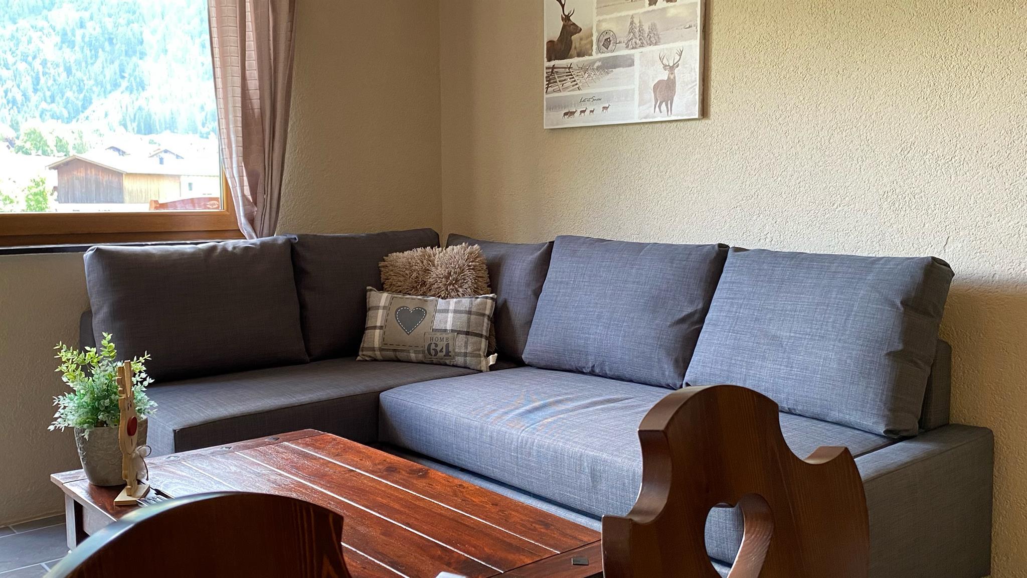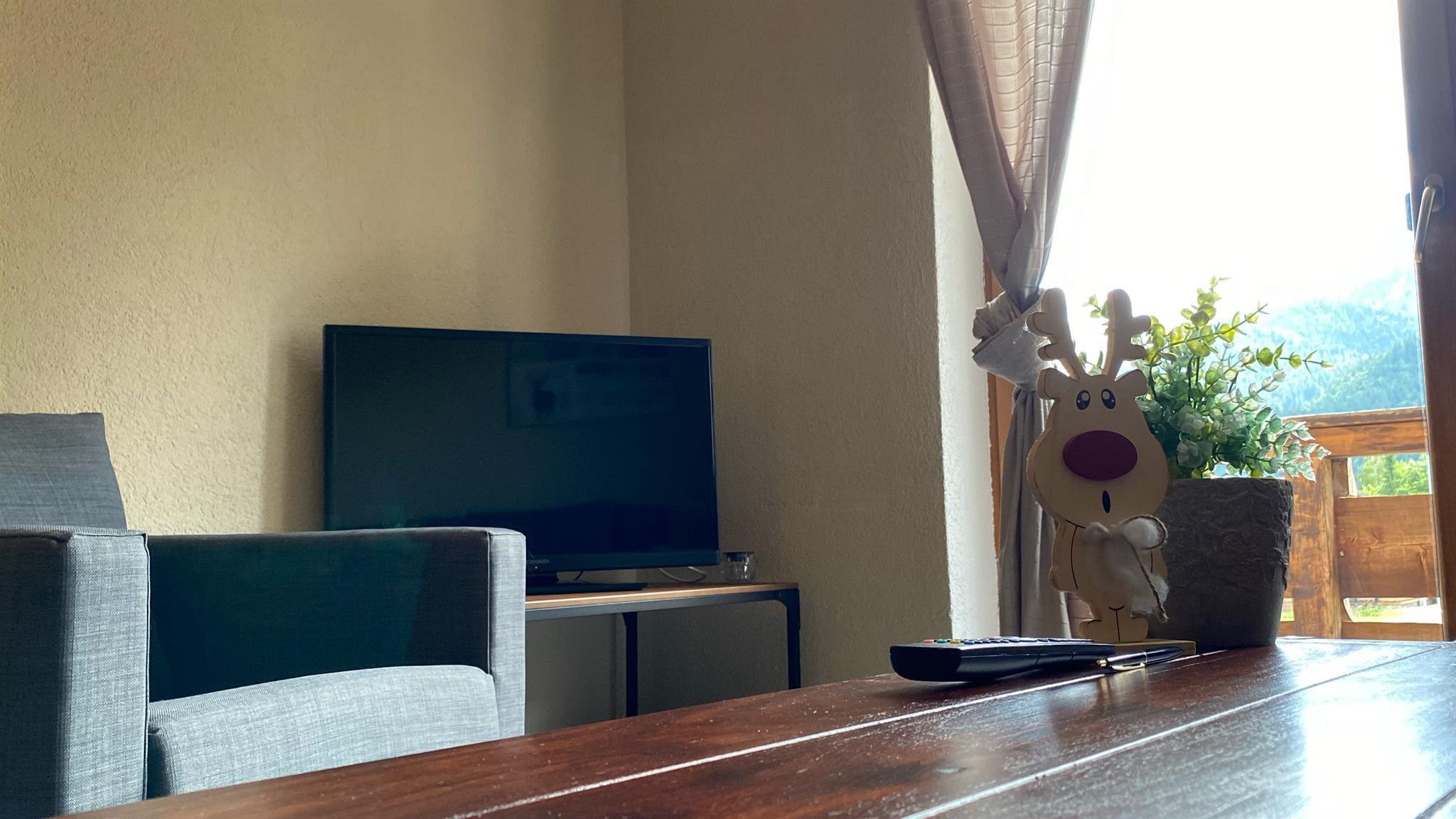 Wohnzimmer mit Küche, 6-Personen-Essbereich, 3-Sitzer-Sofa, TV mit Satellitenempfang. Schlafzimmer mit doppelbet , Schlafzimmer mit doppelbet und etagenbet. Das Badezimmer verfügt über Dusche, WC und doppel Waschbecken. Wohnung mit Balkon im Süden. Sie können WIFI kostenlos nutzen.