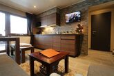 Wohnzimmer mit Küche, 4-Personen-Essbereich, 2-Sitzer-SchlafSofa, TV  mit Satellitenempfang. Schlafzimmer mit doppelbet und etagenbet. Badezimmer verfügt über Dusche, WC und Waschbecken. Diese Wohnung hat einen großen überdachten Balkon im Süden. Sie können drahtloses Internet kostenlos nutzen.